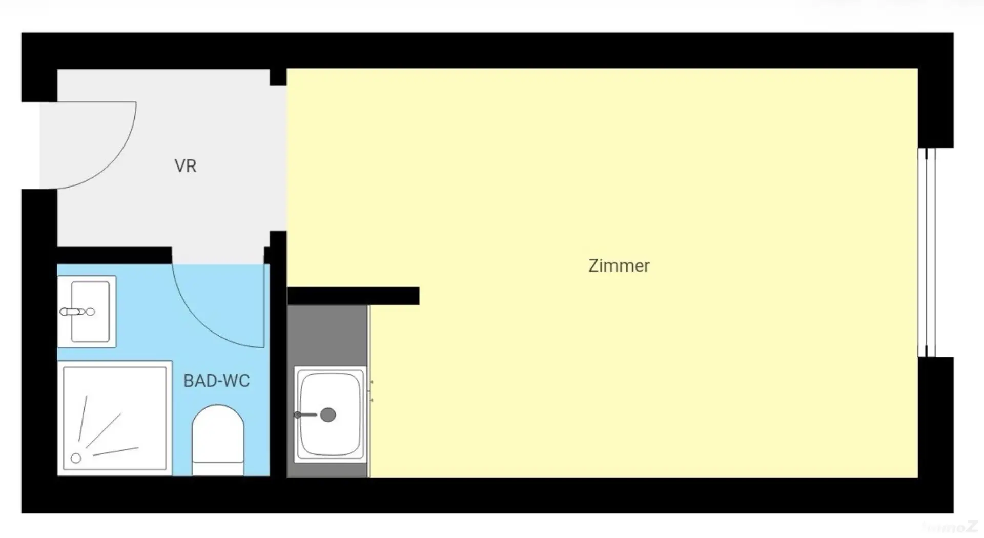 Zimmer mit Kleinküche, Badezimmer mit Dusche und WC, Küche und Schrank im Vorraum eingerichtet.Ein Büroaufwand in der Höhe von 1 x Euro 150,- ist an die Hausverwaltung zu bezahlen.