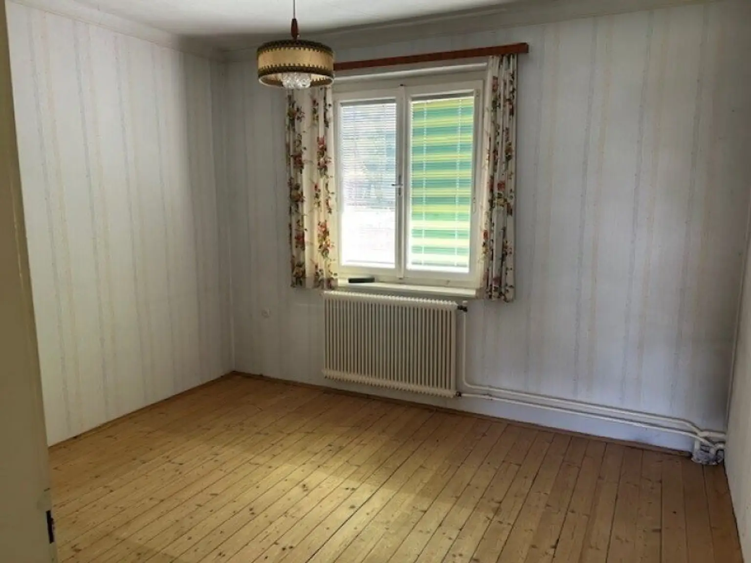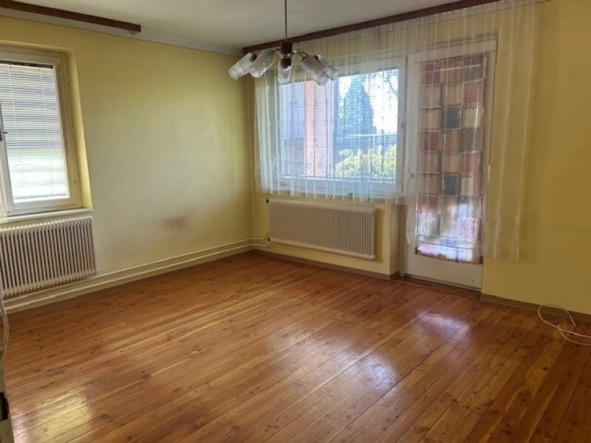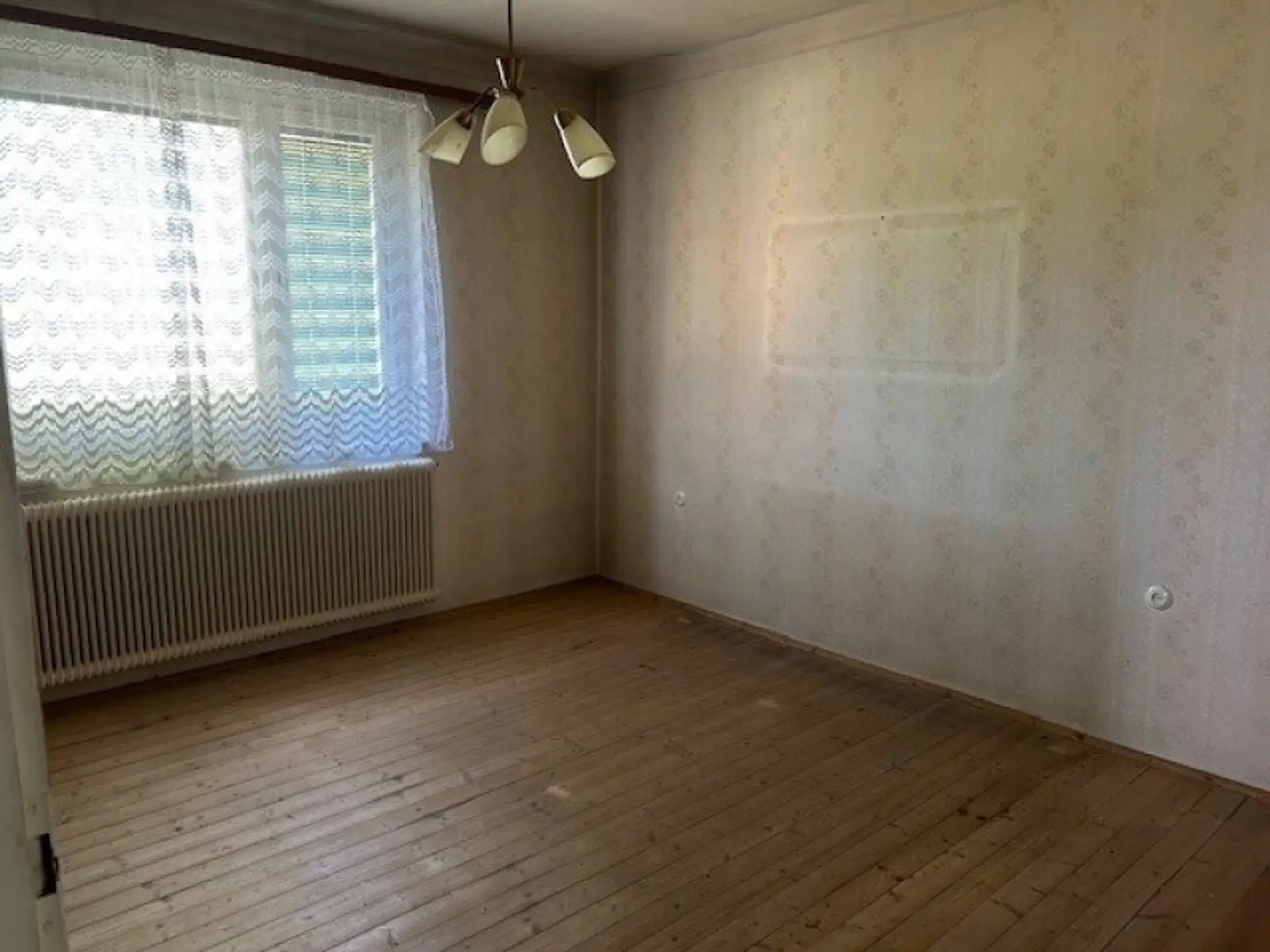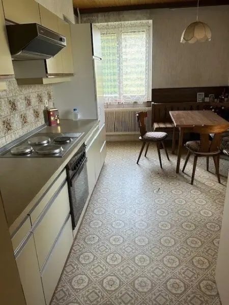 Es teilt sich im Erdgeschoß in 3 Zimmer, Wohnzimmer mit Ausgang auf die Terrasse, Küche, Bad und WC und einen geräumigen Vorraum. Im Keller sind eine Waschküche, Garage, Heizraum, Holzlagerraum und ein Abstellraum.
