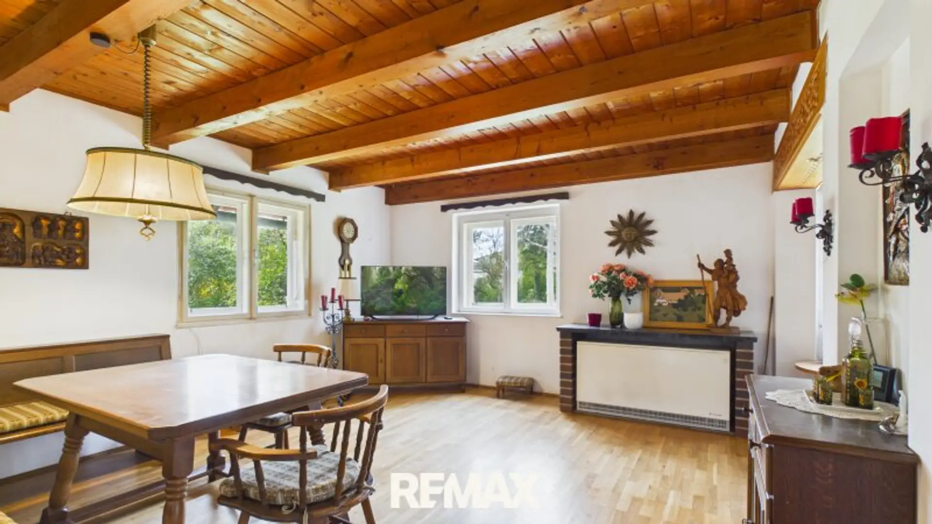 Auch im Außenbereich punktet die Liegenschaft: Eine Garage mit Platz für ein Fahrzeug, eine Terrasse sowie ein außergewöhnlich großer Garten mit gewachsenem Altbaumbestand bieten viel Raum für Erholung, Freizeit und individuelle Gestaltung.