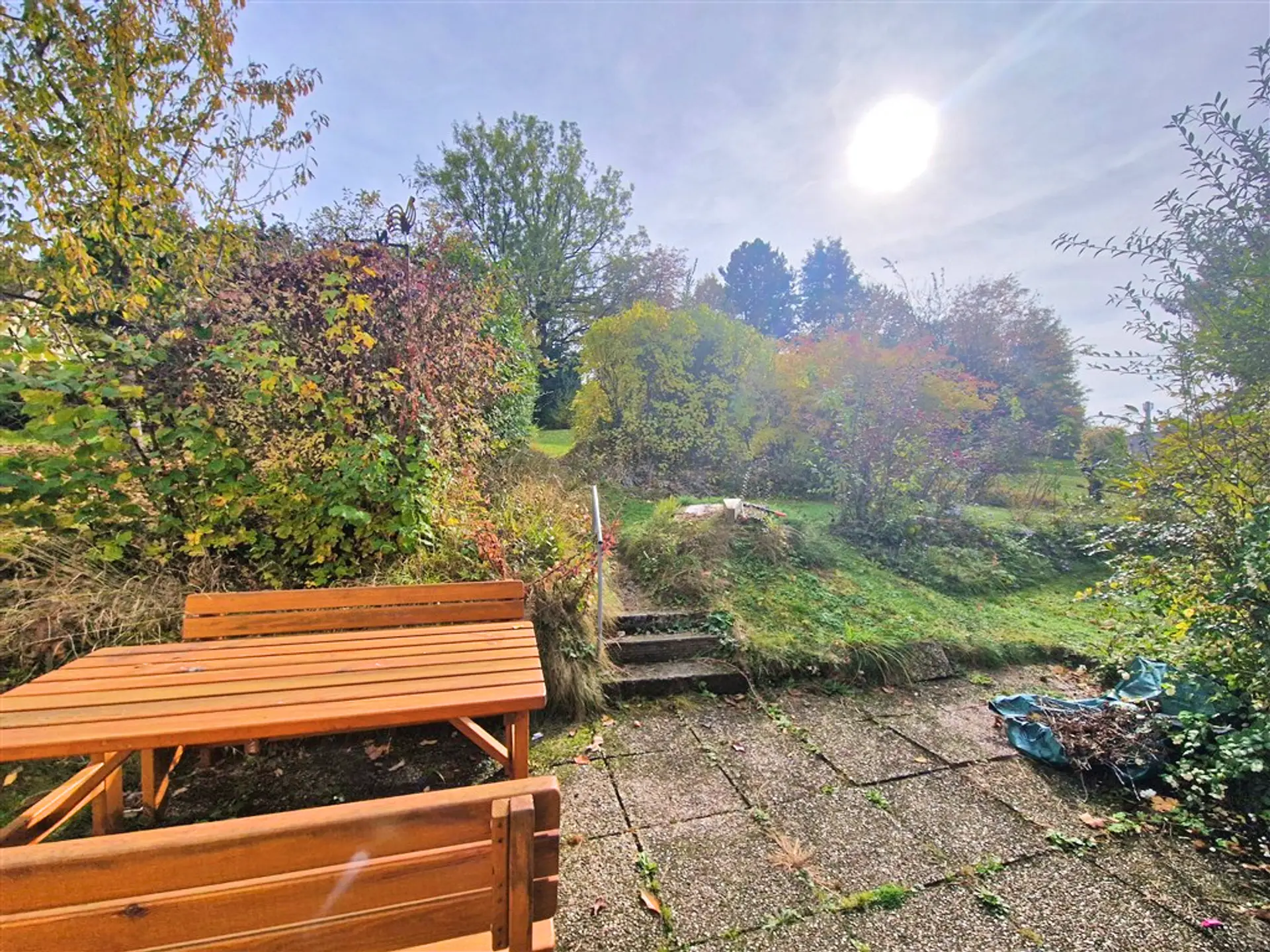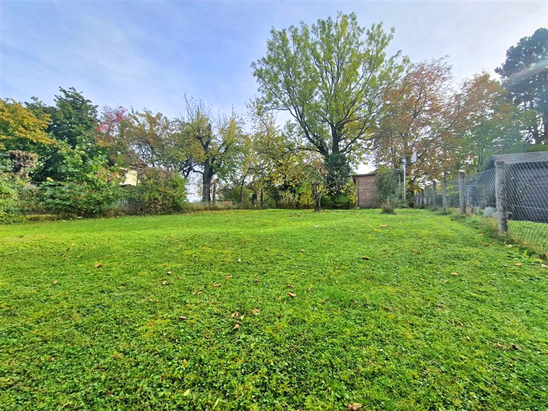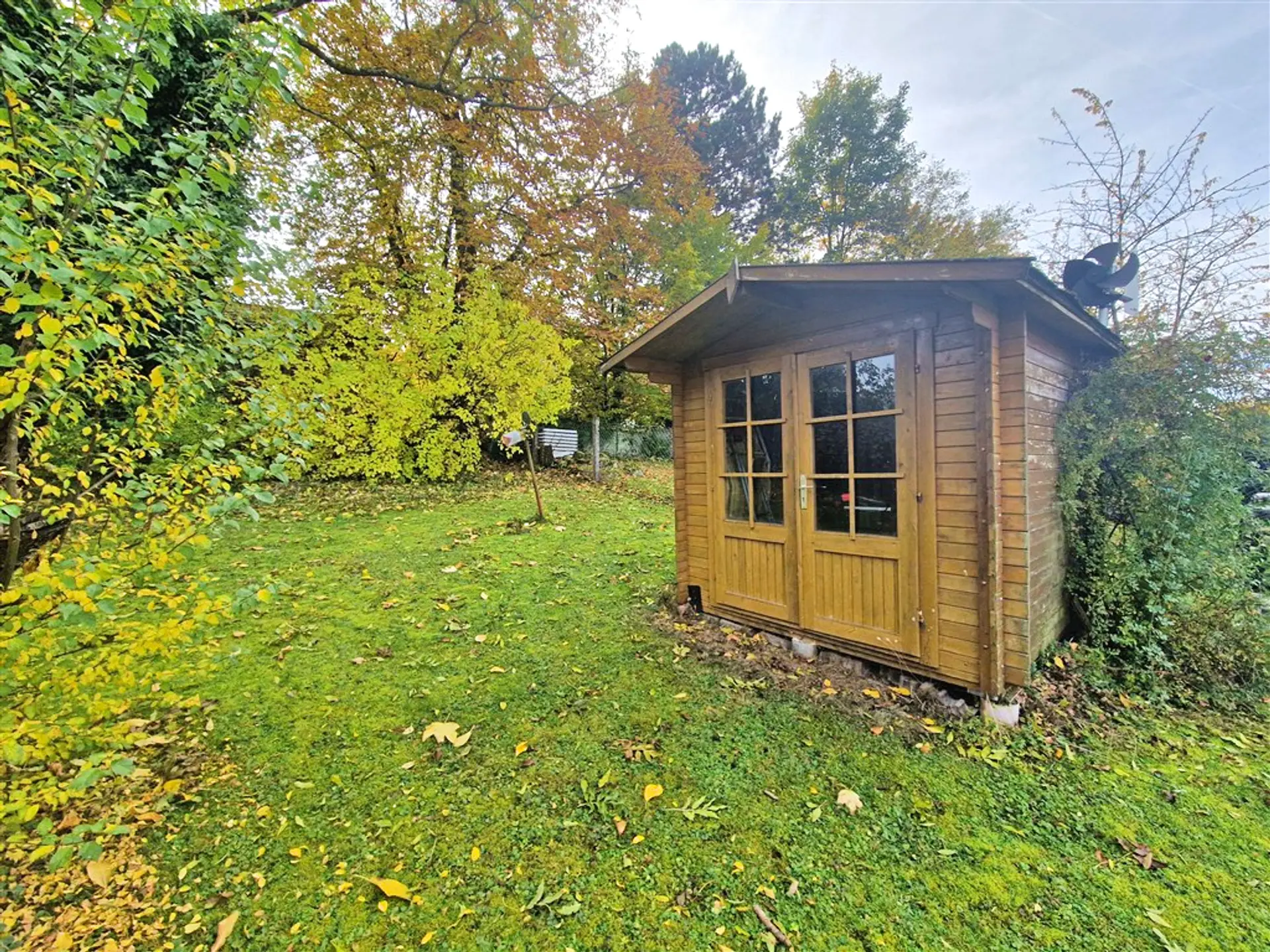 Besonders schön ist der Garten, der viel Platz zum Entspannen und Gestalten bietet. Eine kleine Gartenhütte sorgt für zusätzlichen Stauraum für Geräte oder Gartenmöbel.