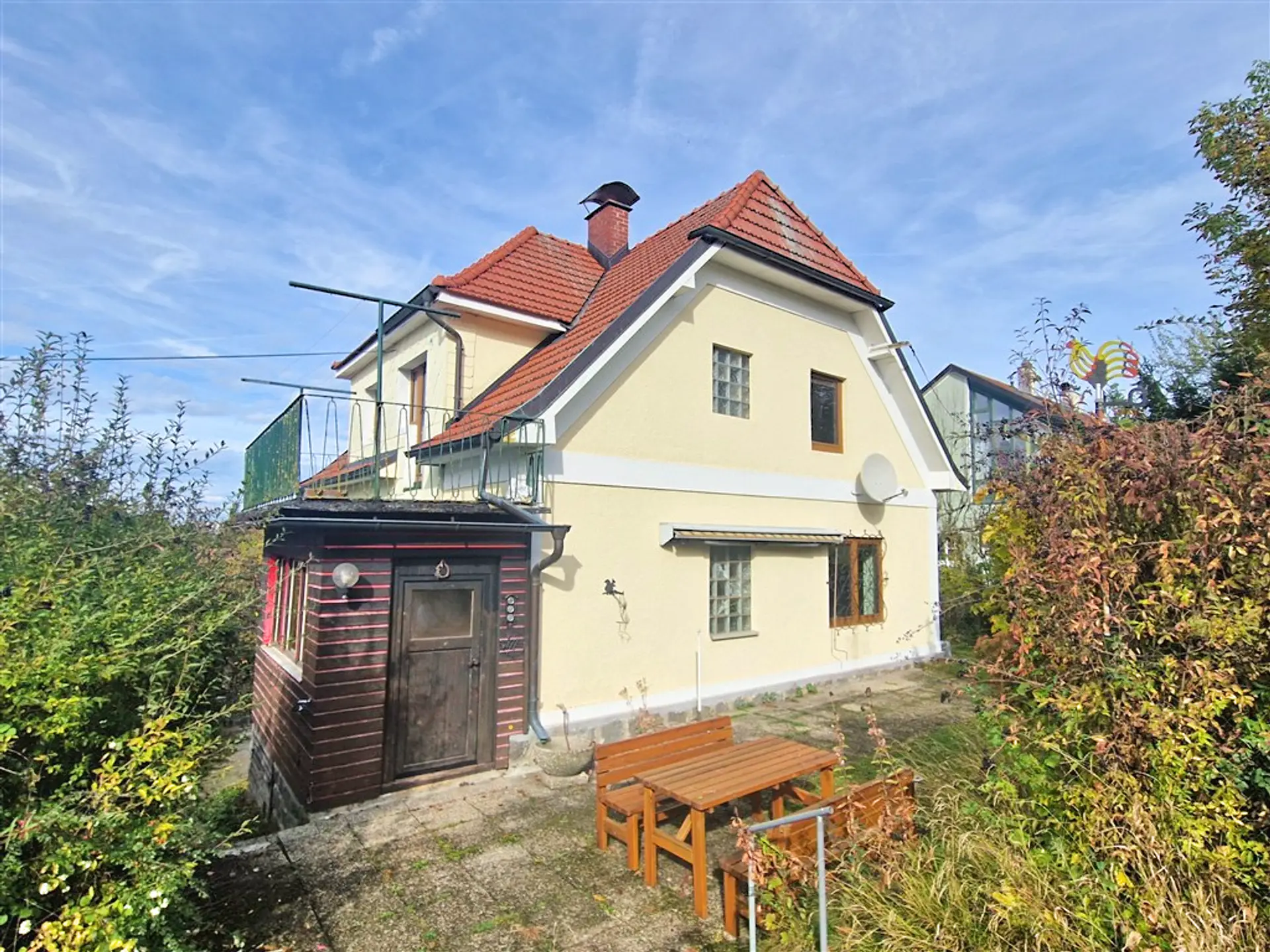 Das Haus bietet auf ca. 108 m² Wohn-Nutzfläche ausreichend Platz. Es verfügt über mehrere Zimmer, eine Küche, ein Badezimmer sowie ein separates WC. Eine Garage, ein Balkon und eine sonnige Terrasse ergänzen das Angebot perfekt. Das Haus ist teilweise möbliert und kann bei Bedarf sofort bezogen werden. Im Obergeschoss befindet sich auch eine zweite Küche.