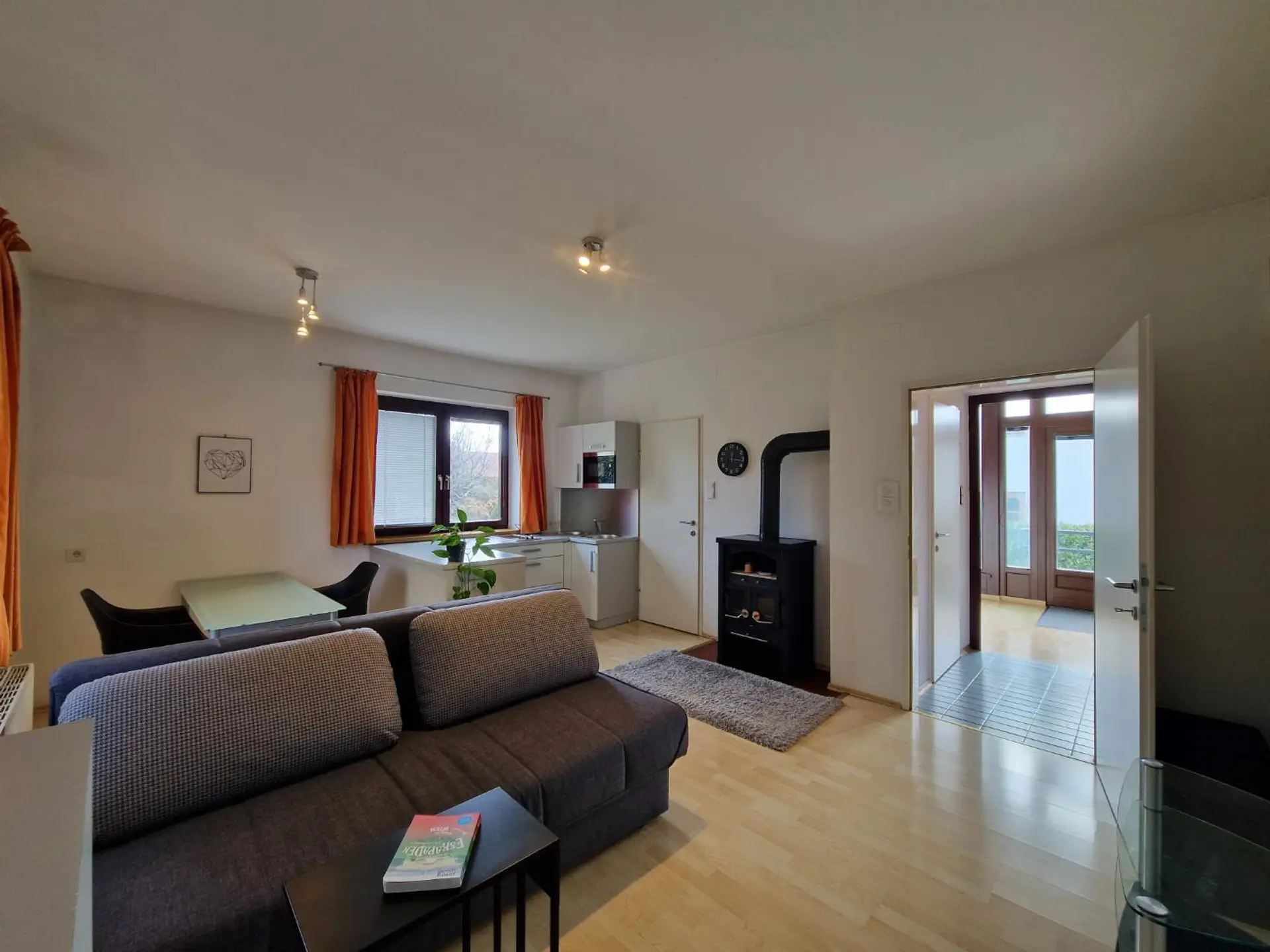 - Wohnzimmer mit kleiner Küche im Zubau