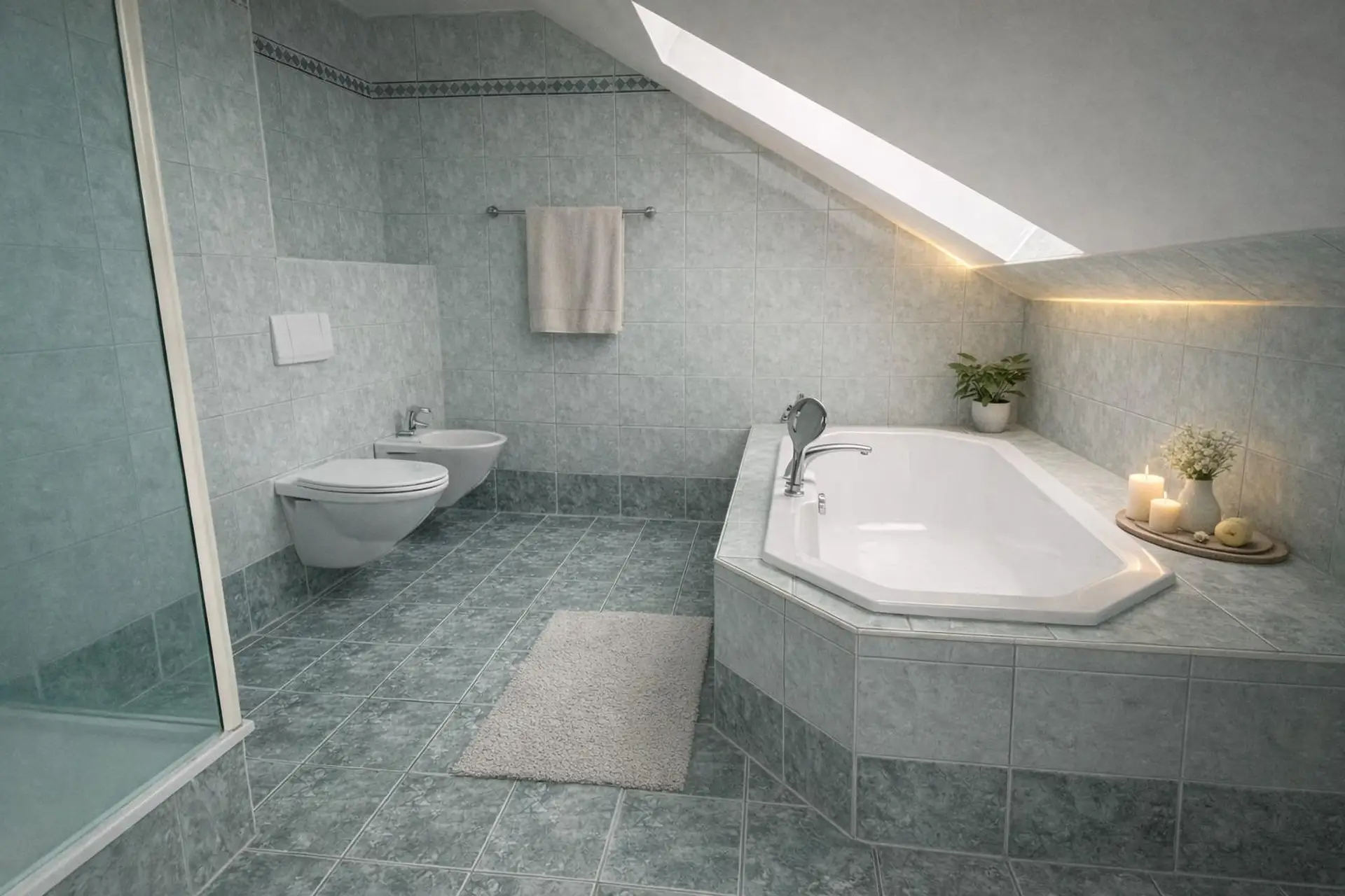 * Badezimmer mit Wanne und Dusche