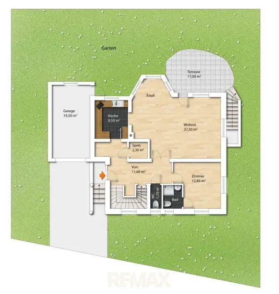 Garage ermöglicht komfortables Parken direkt am Grundstück.