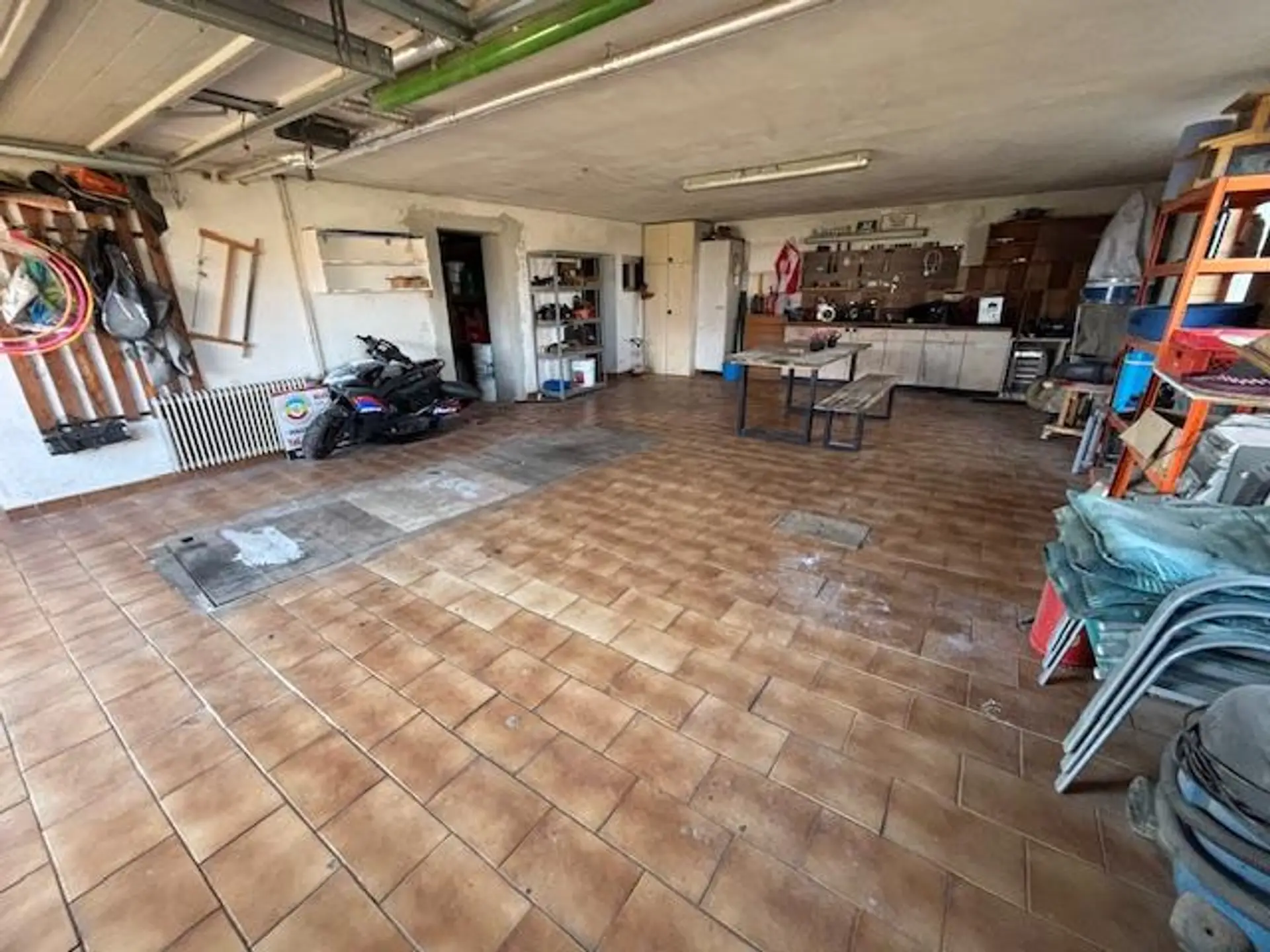 Die Doppelgarage mit den ferngesteuerten Sektionaltoren und der Montagegrube bietet dem Hobbybastler eine Fülle von Möglichkeiten.