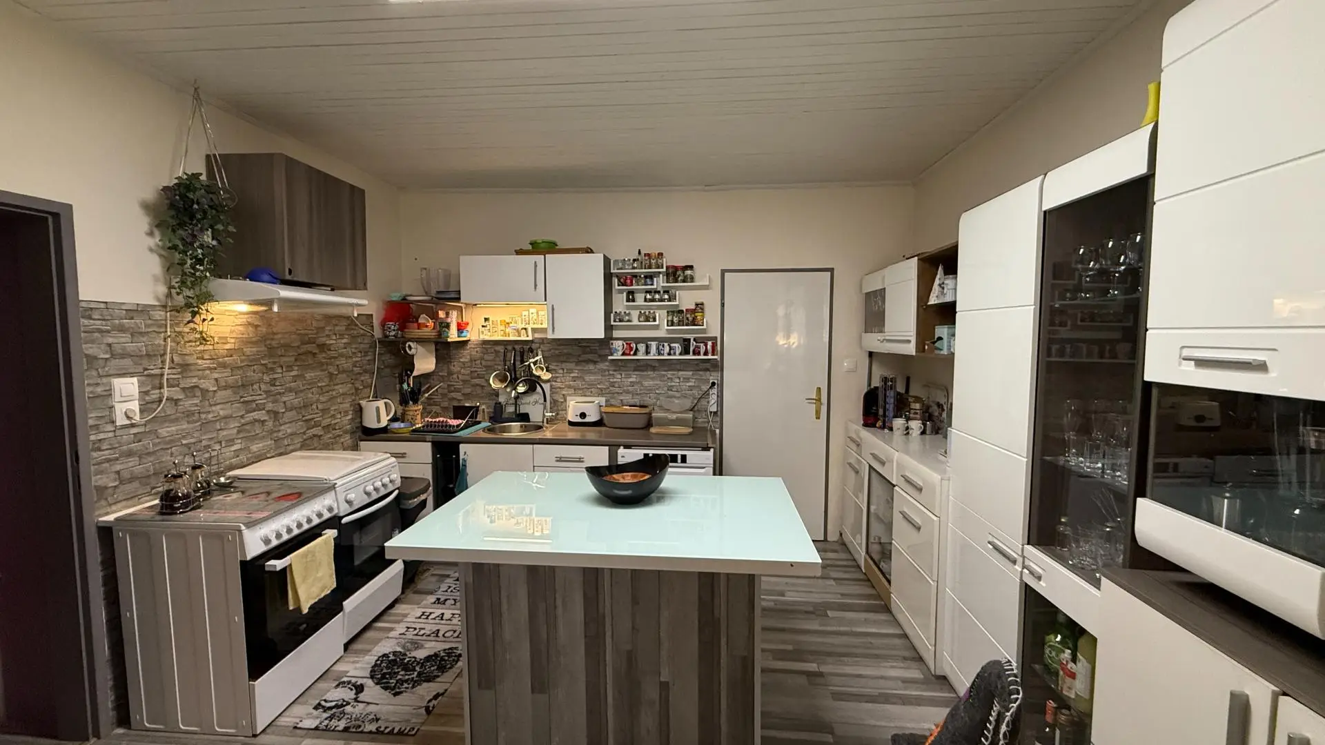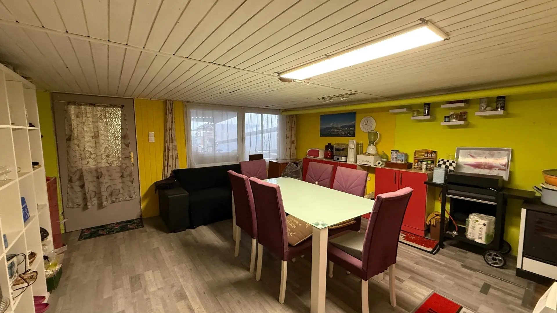 Im Keller gibt es einen Technikraum, zwei Lagerräume und einen gemütlichen Partyraum. Direkt daran angeschlossen ist eine überdachte Terrasse mit 21 m² – ideal für Feste oder entspannte Stunden im Freien.