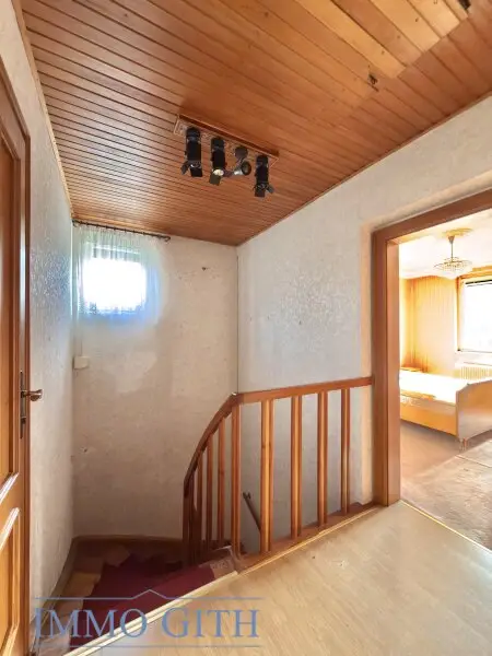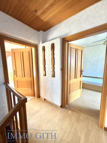 Das Obergeschoss bildet den privaten Wohnbereich des Hauses. Über den Vorraum gelangt man in das Badezimmer mit WC (ca. 5,79 m²) sowie in die Schlafzimmer.