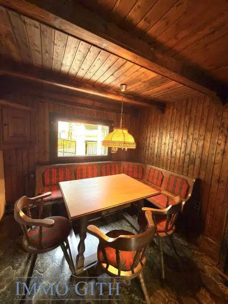 Die ursprünglich als Garage errichtete Fläche wird derzeit als gemütlicher Aufenthaltsraum („Stüberl“) mit ca. 15,13 m² genutzt. Zusätzlich steht ein weiterer Abstellraum mit ca. 6,6 m² zur Verfügung. Vor dem Haus besteht die Möglichkeit, ein Fahrzeug abzustellen.