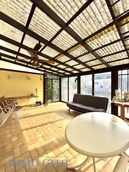 Vom Wintergarten aus gelangt man auf die Terrasse (ca. 18,75 m²) und weiter in den Garten.