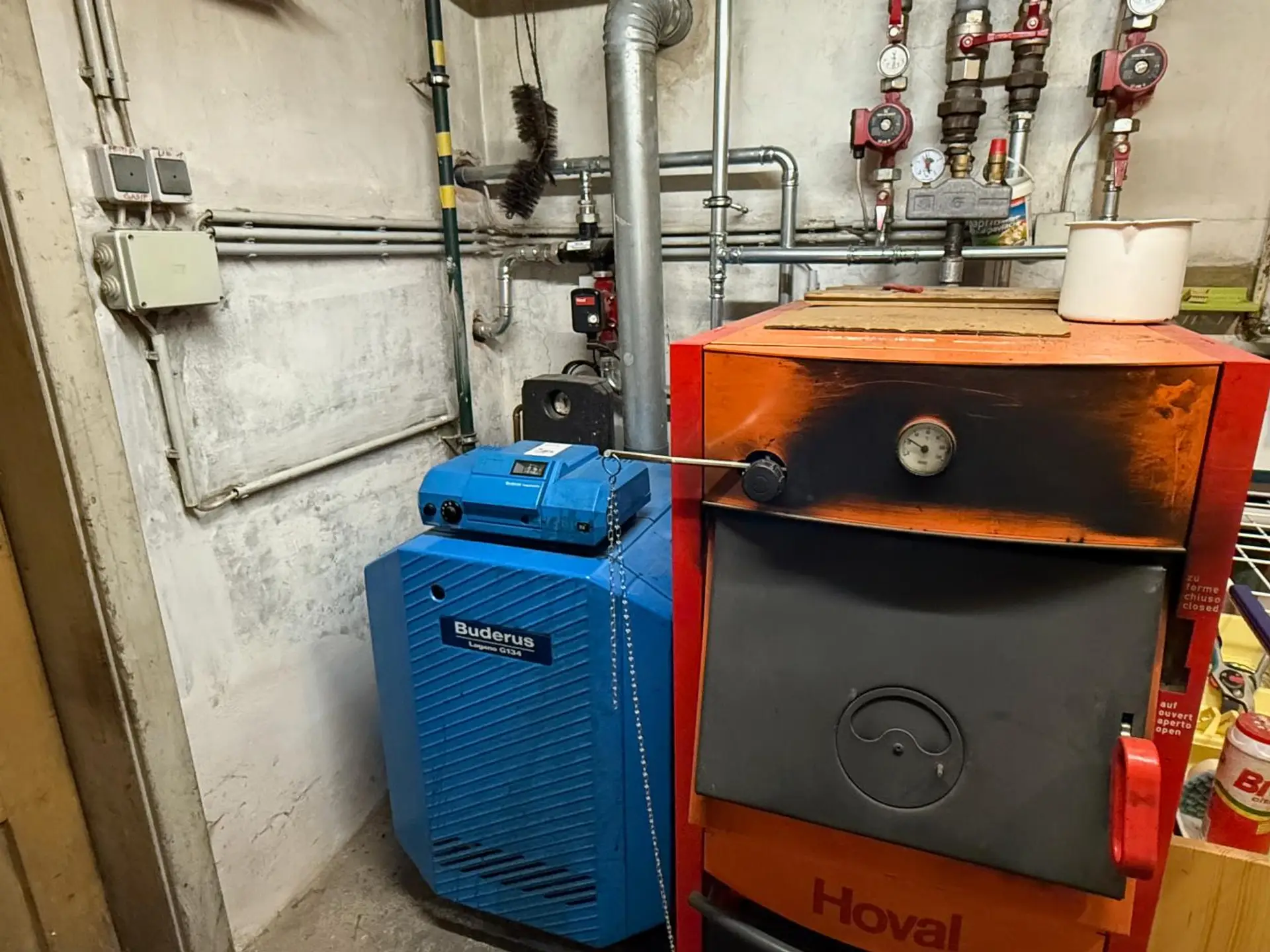 Stückholzkessel mit Pufferspeicher und Gastherme (Buderus)