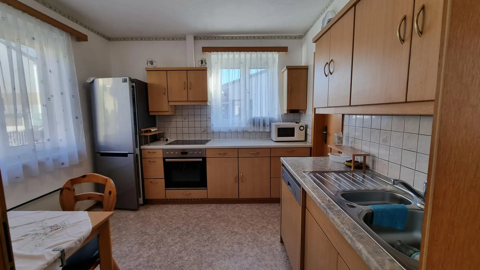Besonders praktisch: Das Haus verfügt über einen zweiten Eingang/ Ausgang über einen Windfang, der direkten Zugang zum gepflegten Garten bietet und für zusätzlichen Komfort sorgt.