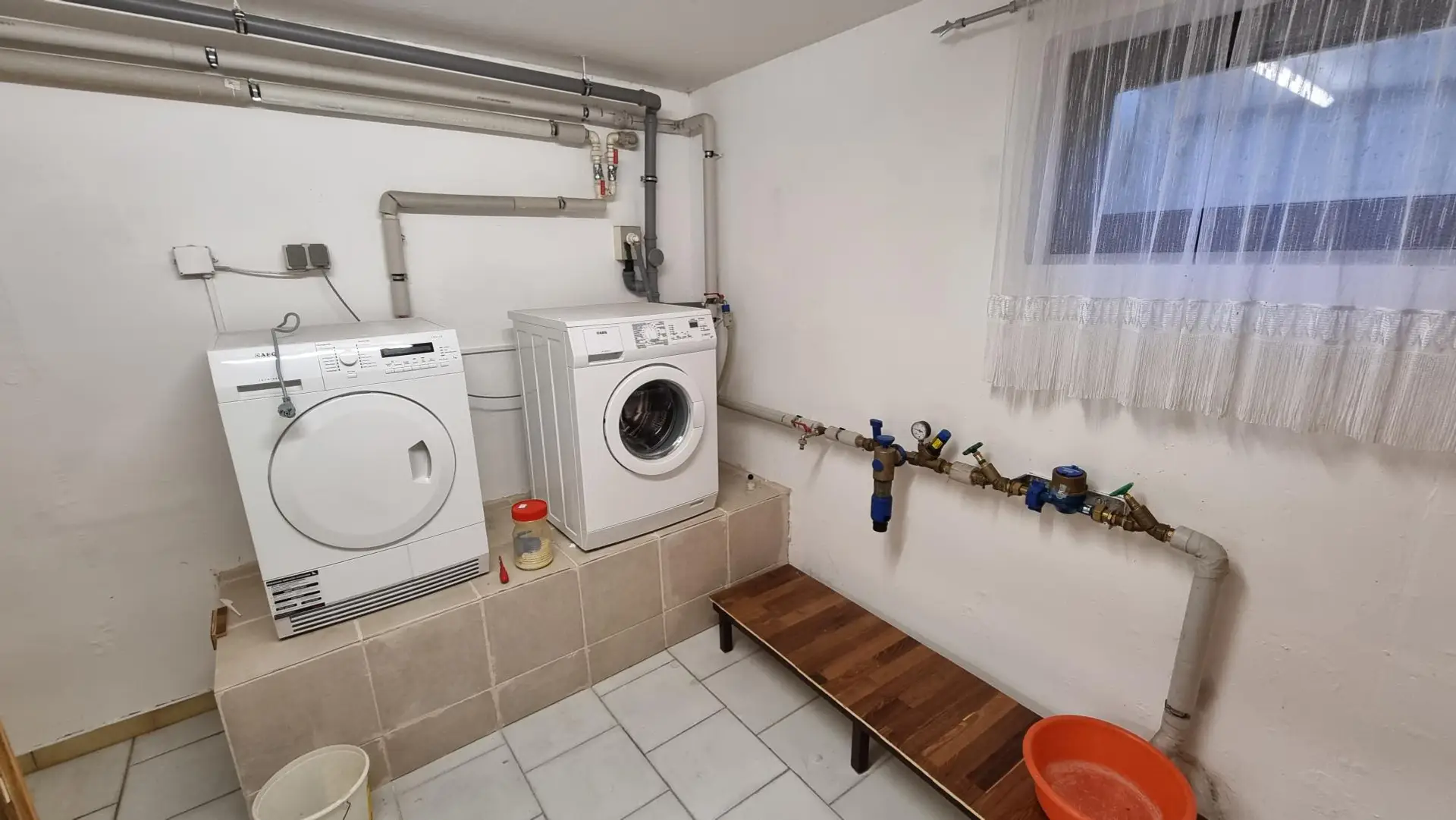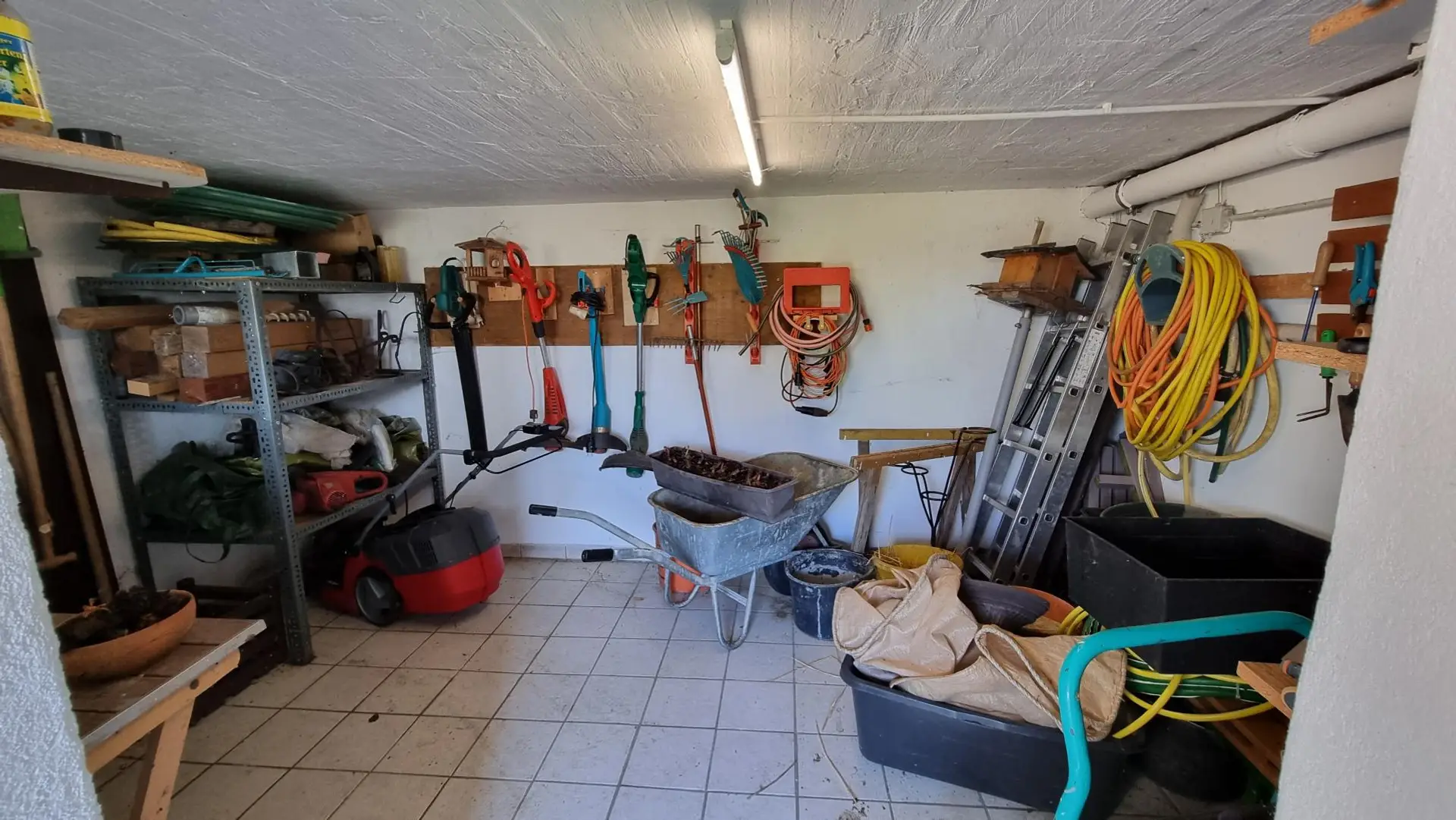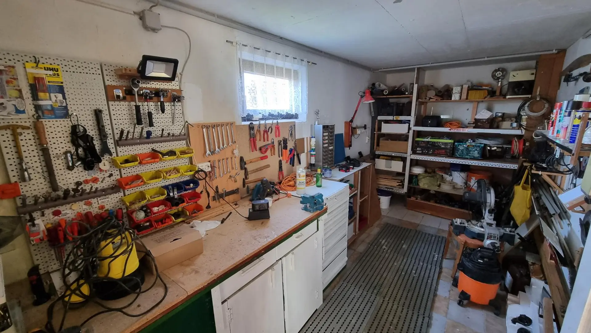 Das Haus ist voll unterkellert und bietet hier zahlreiche Nutzungsmöglichkeiten: ein gemütliches Kellerstüberl mit Sitzecke, eine Waschküche, mehrere Kellerräume, einen Heizraum, eine Werkstatt sowie einen Abstellraum. Die Beheizung erfolgt mittels Elektroheizung. Strom-, Wasser- und Kanalanschlüsse sind vorhanden; zusätzlich steht ein Brunnen zur Verfügung.