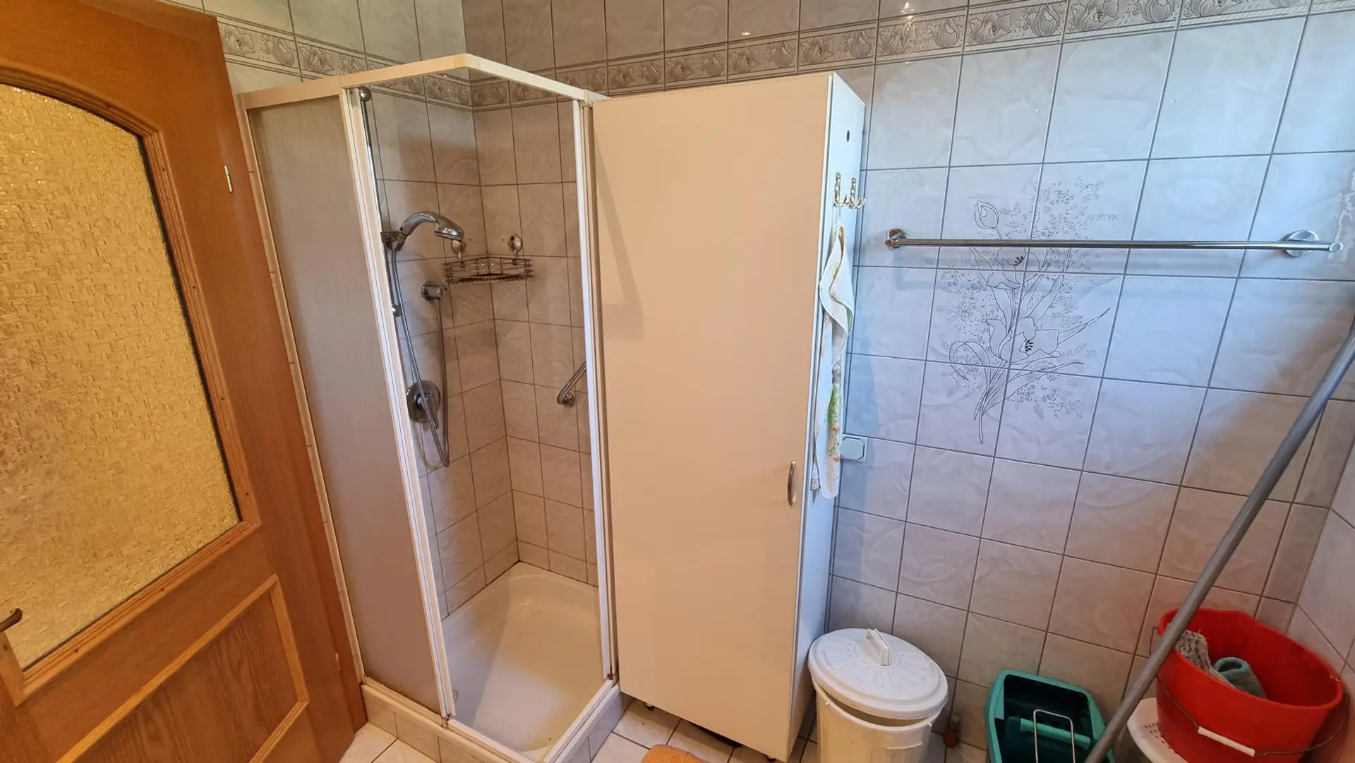 Das Badezimmer bietet sowohl eine Badewanne als auch eine separate Dusche, ergänzt durch ein separates WC.