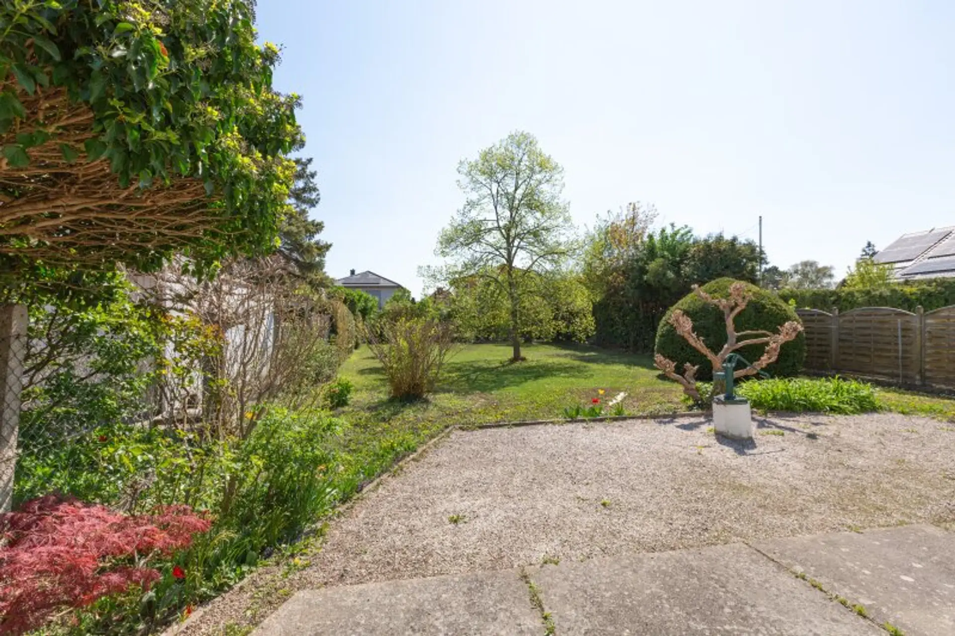 Der Außenbereich stellt eines der zentralen Highlights dieser Liegenschaft dar. Der großzügige Garten bietet viel Platz für individuelle Gestaltung und eröffnet zahlreiche Möglichkeiten, sei es als Rückzugsort im Grünen, für Familien oder als Basis für eine Erweiterung des bestehenden Hauses.