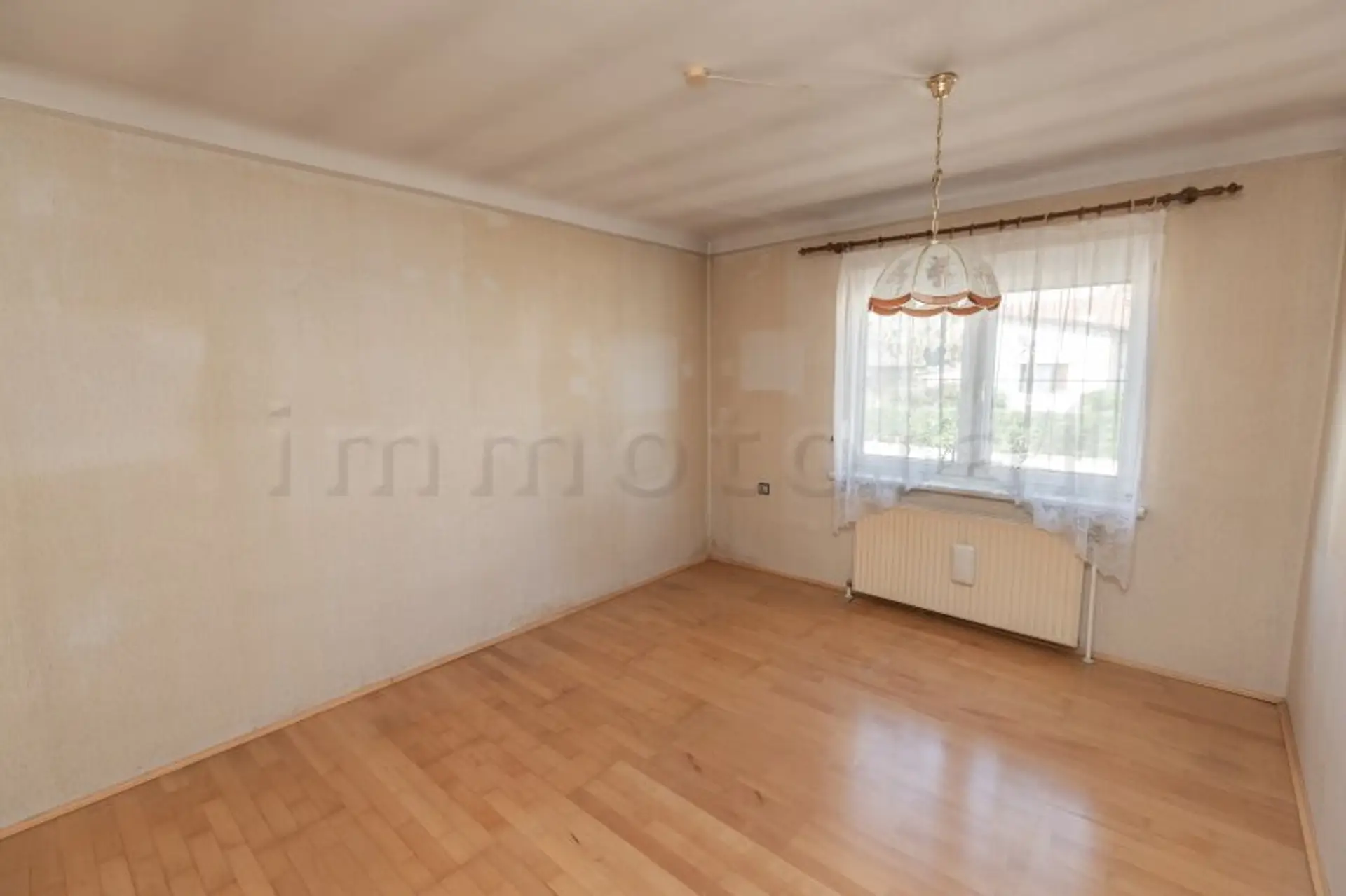 Das im Jahr 1963 errichtete Einfamilienhaus befindet sich auf einem ca. 676 m² großen Grundstück und bietet eine Wohnfläche von rund 68 m² auf einer Ebene. Der Grundriss ist klassisch und funktional gestaltet und umfasst ein Wohnzimmer, ein Schlafzimmer, ein weiteres Zimmer, eine separate Küche sowie ein Badezimmer mit WC.
