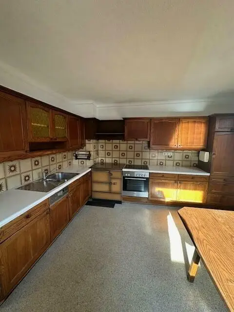 Das ca. 1960 errichtete Massivhaus verfügt über rund 214 m² Wohnfläche auf zwei Etagen und eignet sich ideal für eine oder zwei Familien. Raumaufteilung: