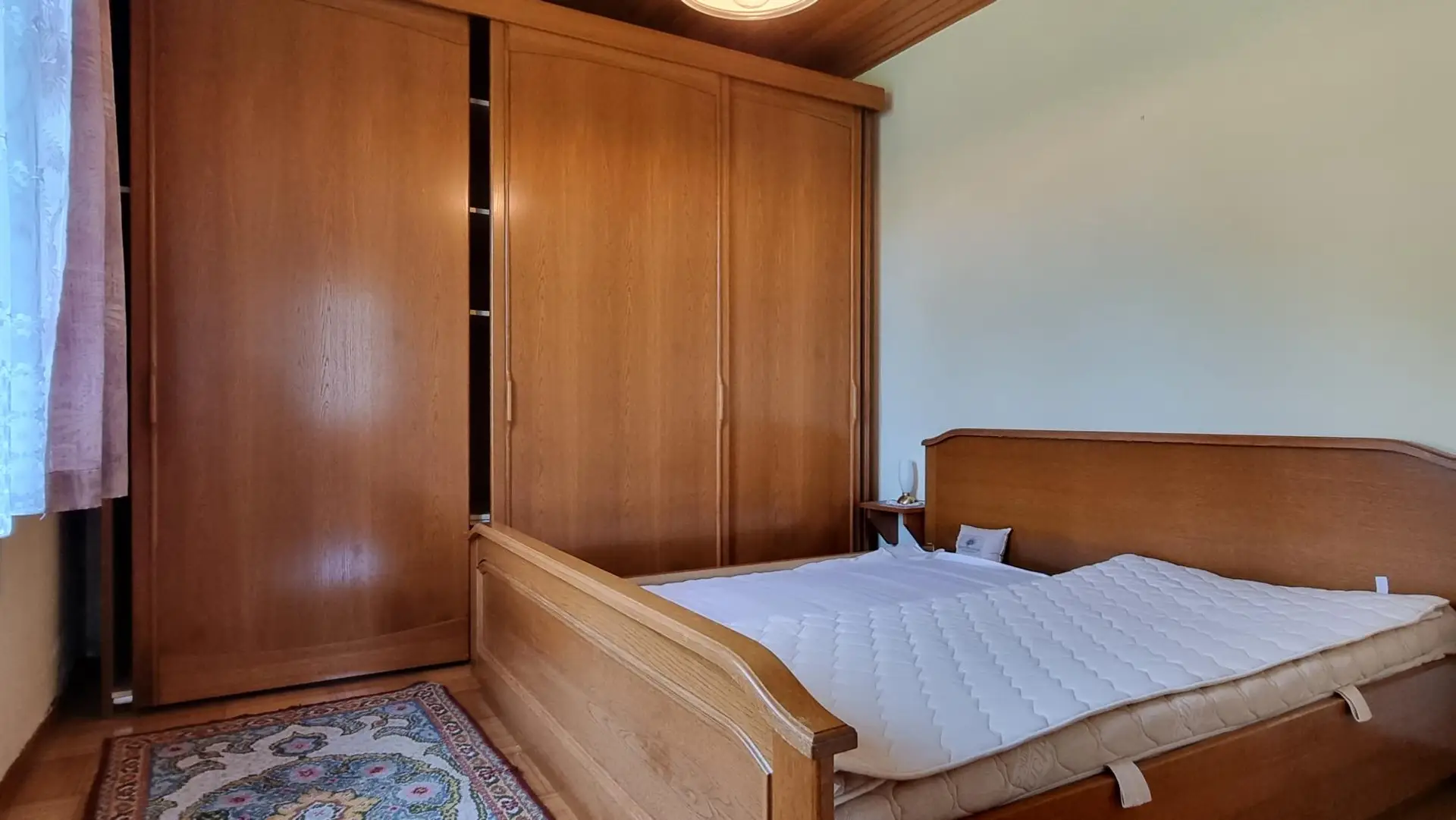 Im Erdgeschoss gelangt man vom Vorraum in die Küche mit Essbereich. Daran angeschlossen sind ein helles, geräumiges Wohnzimmer sowie ein kleines Schlafzimmer. Ein Badezimmer mit Badewanne und ein separates WC ergänzen diese Ebene.