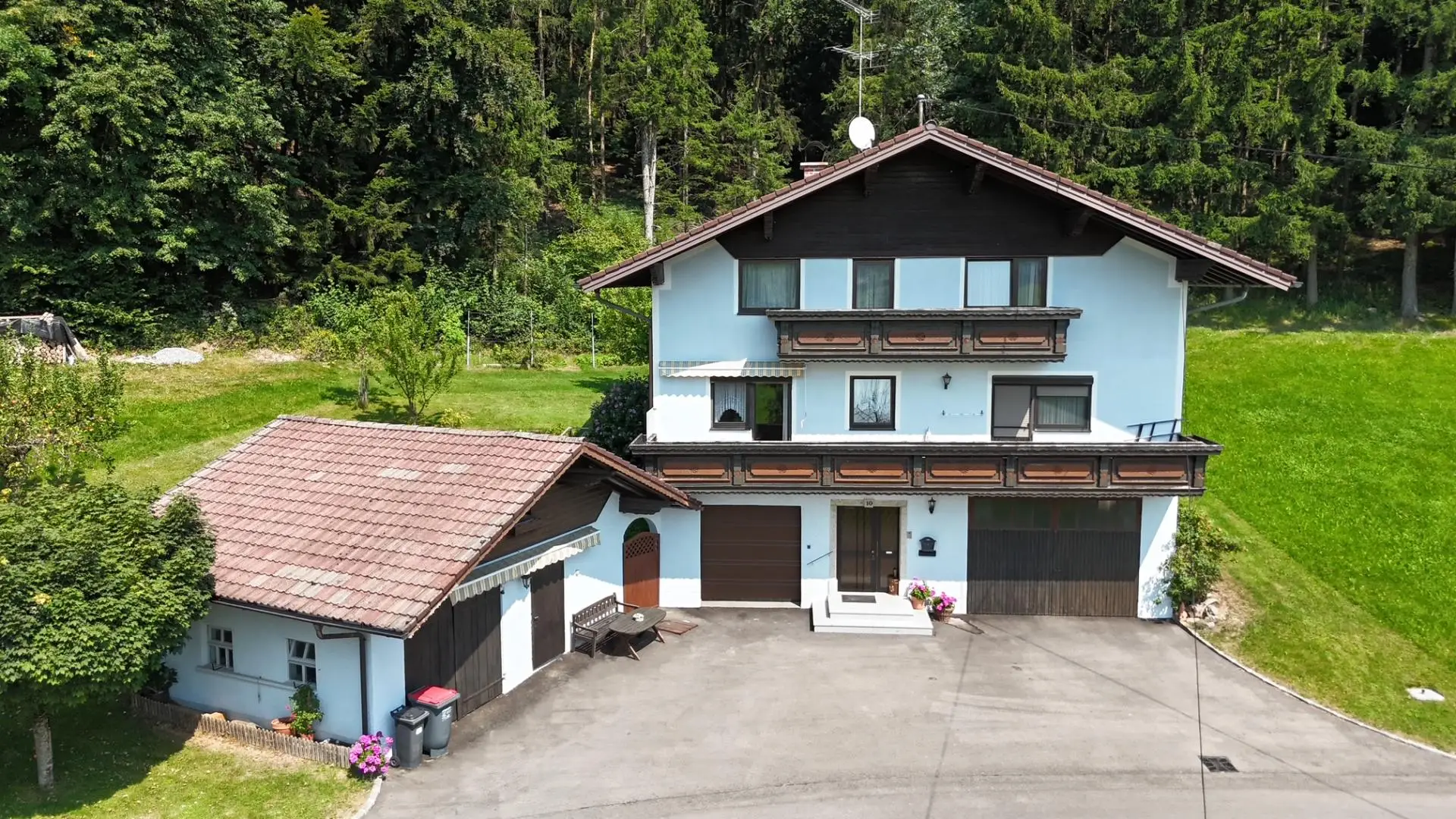Das Gebäude ist voll unterkellert und wird mit einer Ölheizung beheizt. Zwei Garagen stehen zur Verfügung. Zusätzlich gibt es ein Nebengebäude aus dem Jahr 1993 mit einer Nutzfläche von ca. 33 m², bestehend aus Abstellraum und Holzlager.