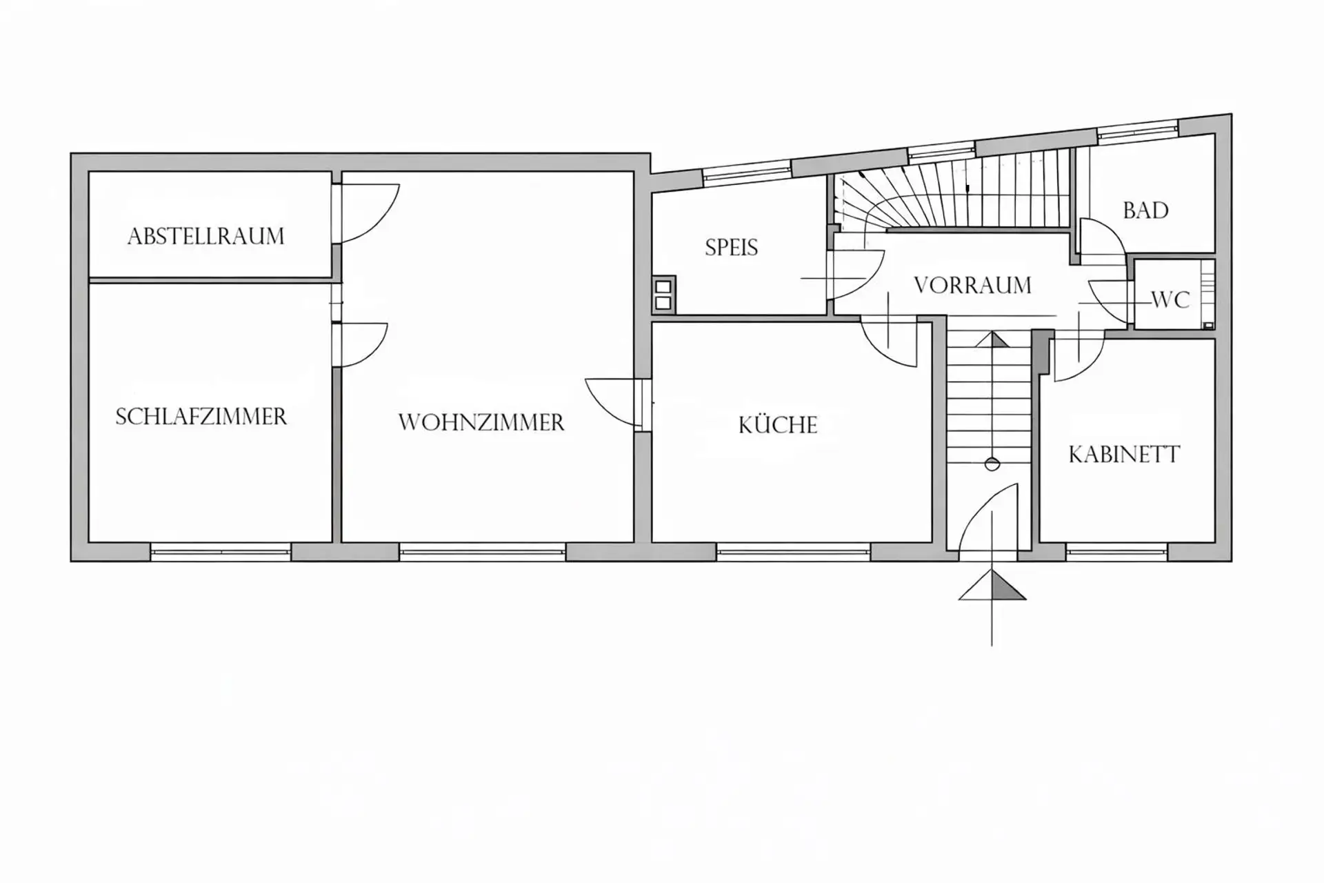 RAUMAUFTEILUNG: Wohnzimmer, Schlafzimmer, Küche, Kabinett, Speis, Abstellraum, Vorraum, Badezimmer, separates WC. Die Räume sind gut geschnitten und bieten vielseitige Nutzungsmöglichkeiten.