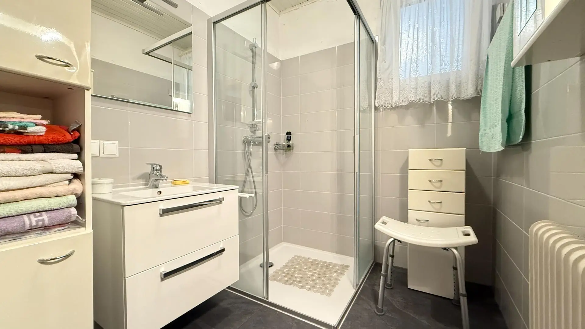 • Badezimmer im Zubau mit Fußbodenheizung