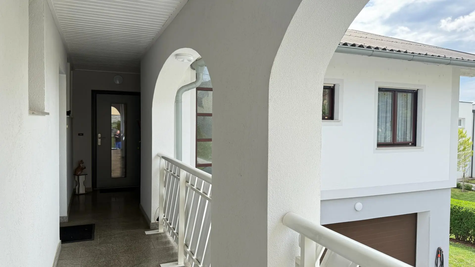 • überdachter Balkon mit Glasgeländer