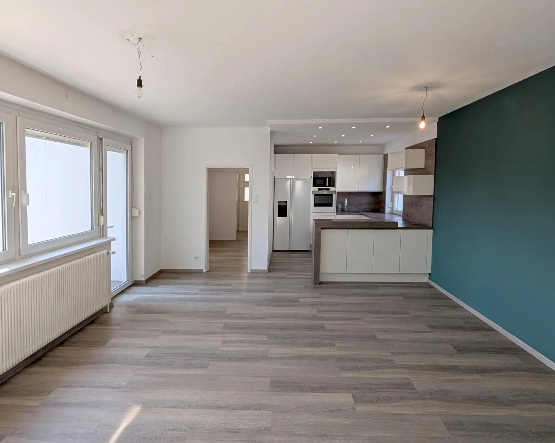 großes Wohnzimmer mit offenem Küchenbereich (inkl. modern möblierter