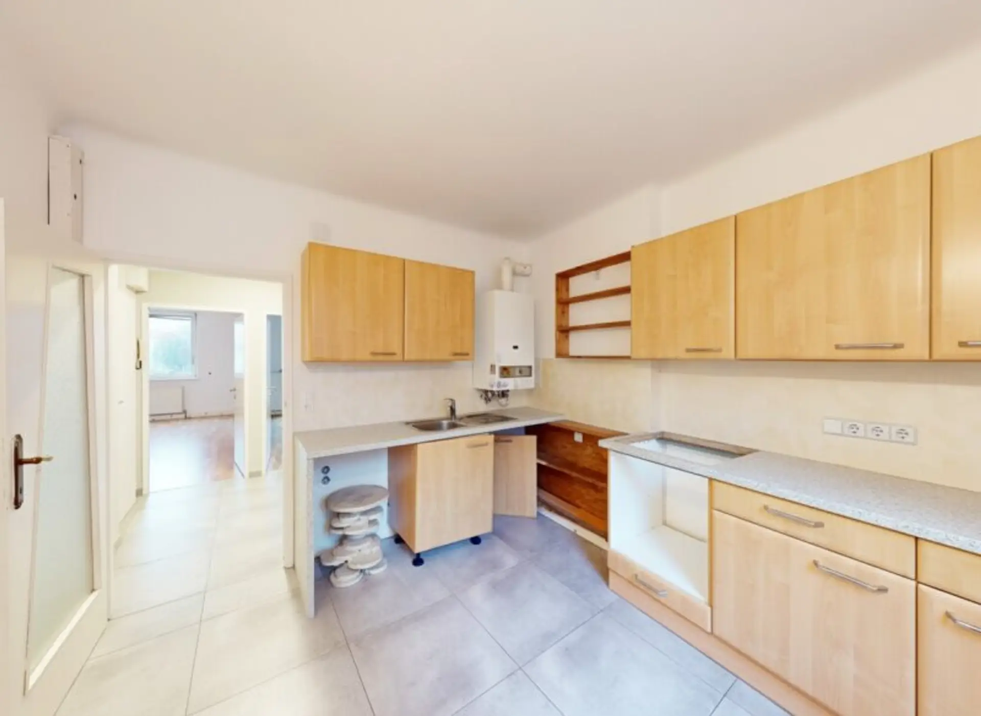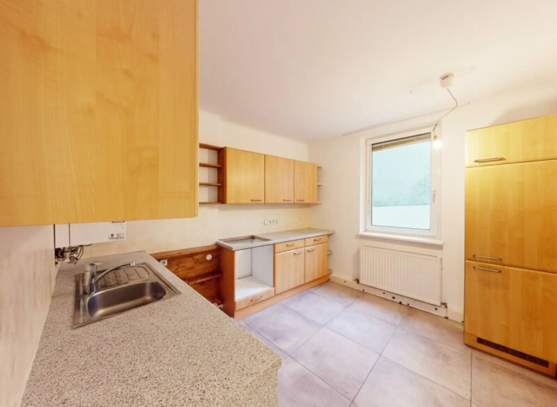 Die Wohnung selbst befindet sich im 1. Liftstock und ist in saniertem Zustand. Große moderne Fliesen und Parkettböden sowie ein praktisches, kompaktes Bad mit ebenerdiger Dusche und WC, erwarten Sie hier auf einer Fläche von fast 50m². Ideal für ein Paar oder AlleinerzieherInnen.