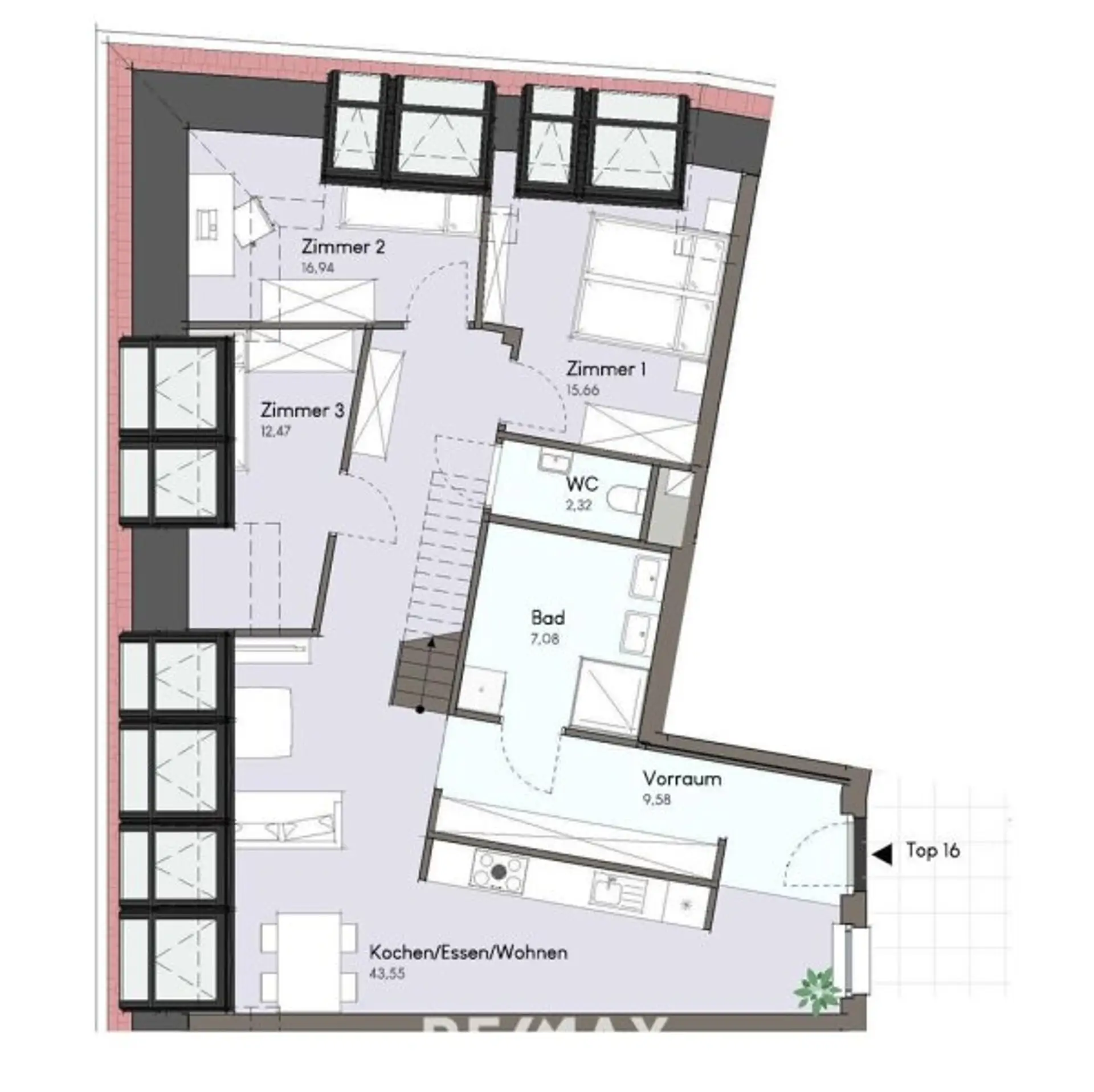 Top 16 ist die perfekte Wahl für Familien, anspruchsvolle Paare oder Menschen mit Platzbedarf, die Wert auf Komfort, Freiraum und eine starke Infrastruktur legen. Die Kombination aus großzügigem Grundriss, riesiger Dachterrasse, zusätzlichem Dachraum und bester Versorgung im Haus macht dieses Objekt zu einem echten Highlight.