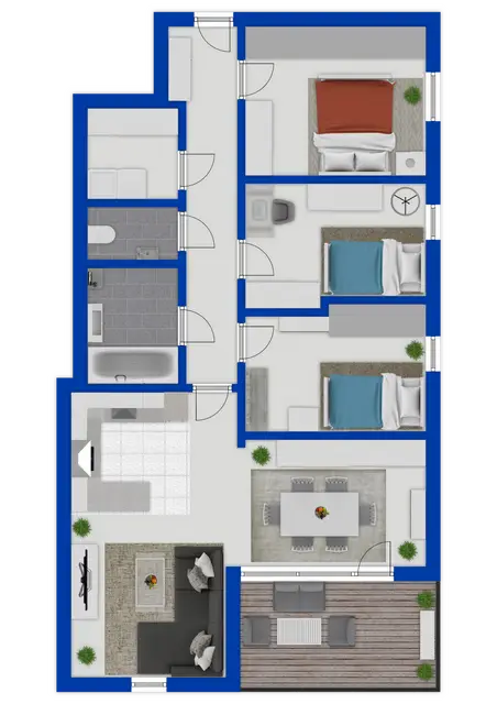 - Drei nach Osten hin ausgerichtete (Schlaf)zimmer