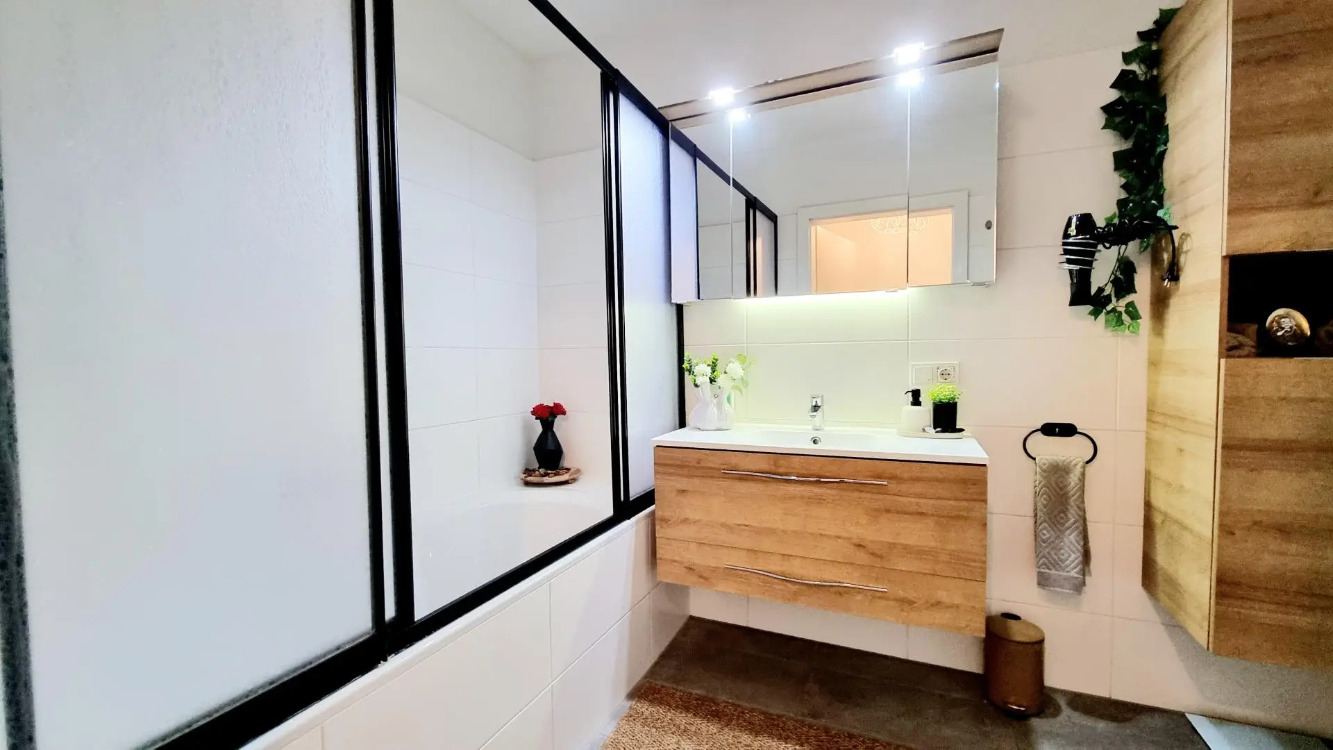 - Hochwertig eingerichtetes Bad mit Badewanne