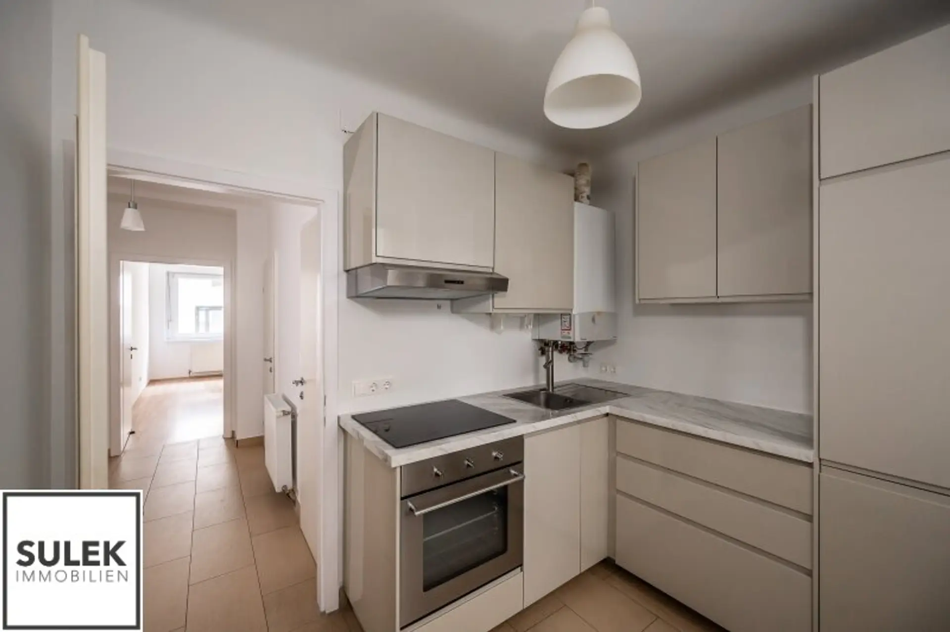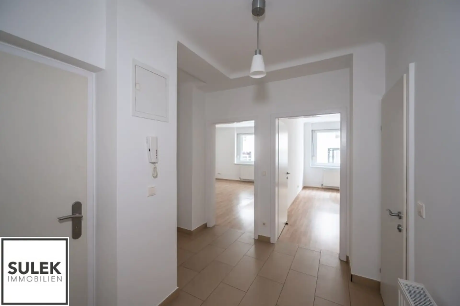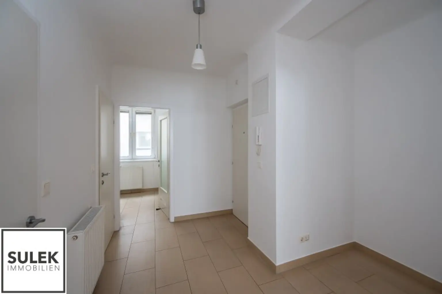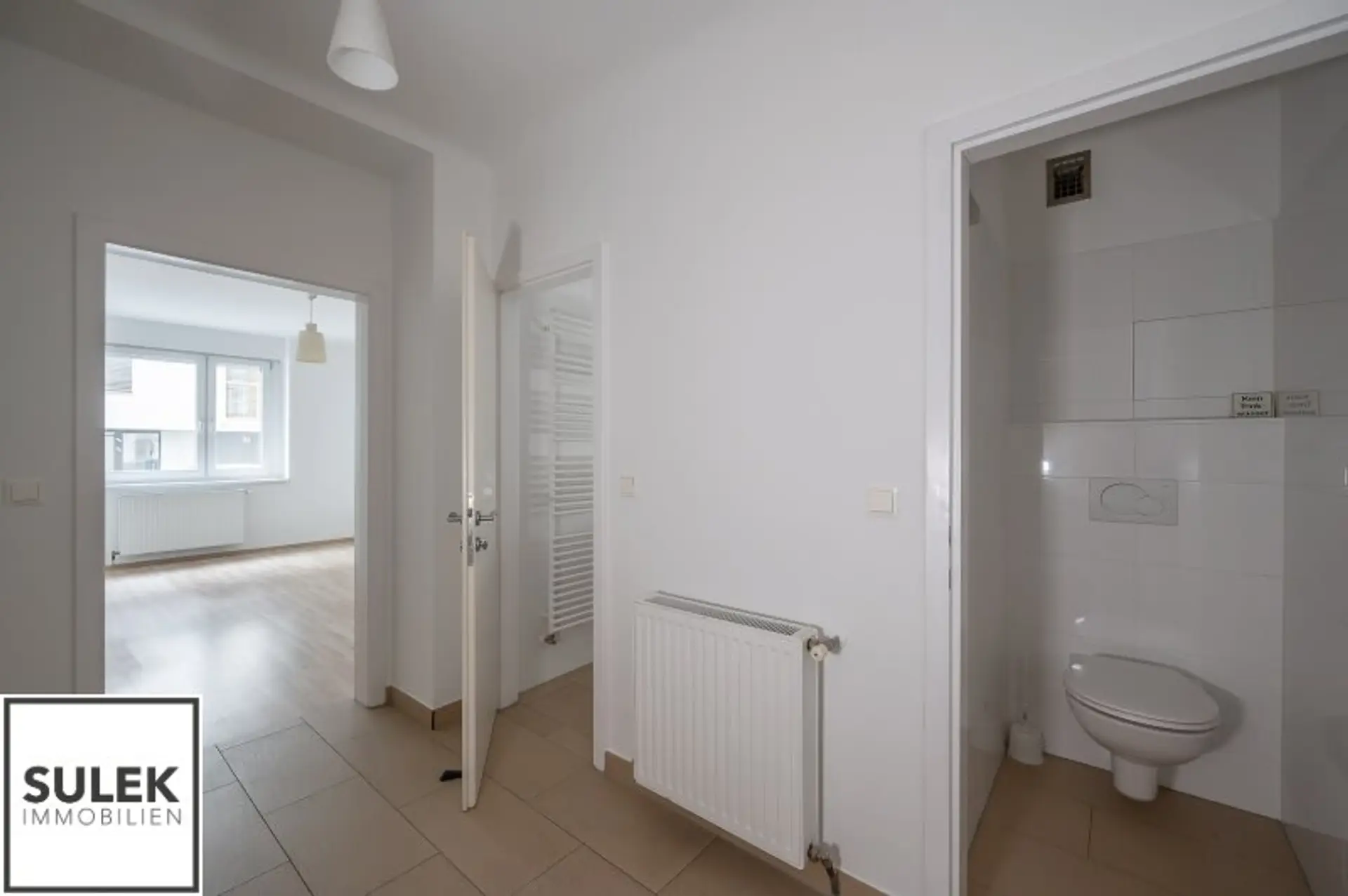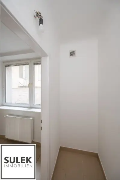 Sie betreten die Wohnung über einen Vorraum, von dem aus Sie sämtliche Räumlichkeiten zentral erreichen können. Rechter Hand befindet sich die moderne und voll ausgestattete Küche, sowie Zugang zum praktischen Abstellraum. Stirnseitig befindet sich das Badezimmer mit Wanne, Waschplatz und Handtuchheizkörper. Vom Vorraum aus gesehen befinden sich linker Hand das Schlafzimmer, sowie ein quadratisch geschnittenes Wohnzimmer.