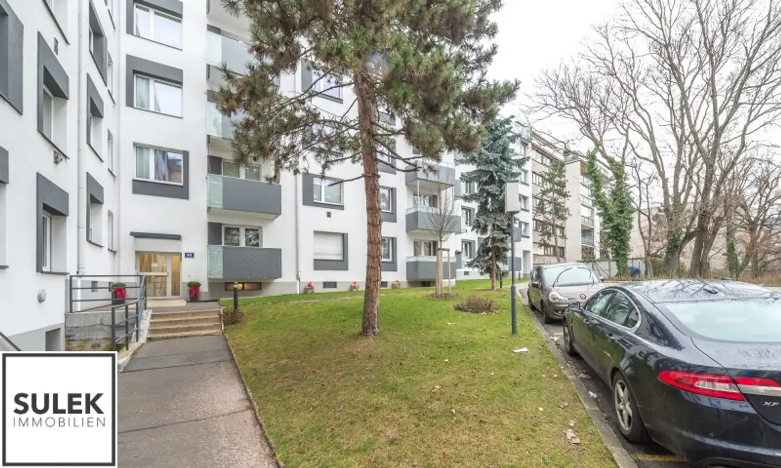 Die Wohnung befindet sich im Hochparterre eines 1966 errichteten Gebäudes und ist in Richtung der verkehrsberuhigten Einwanggasse ausgerichtet. Die westseitige Ausrichtung sorgt für angenehme Lichtverhältnisse. Das Haus wurde im Jahr 2001 erstmalig umfassend saniert (Fenster, Elektrik, Leitungen) und im Jahr 2015 wurde des Weiteren eine thermische Sanierung durchgeführt.