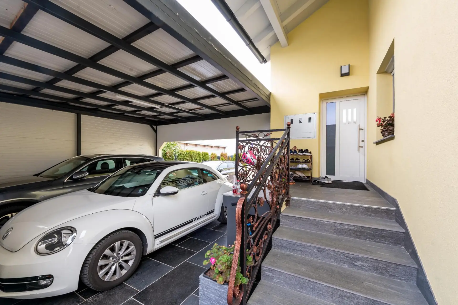 • Überdachter Doppelcarport mit Steinplatten und direktem, wettergeschütztem Zugang zum Haus