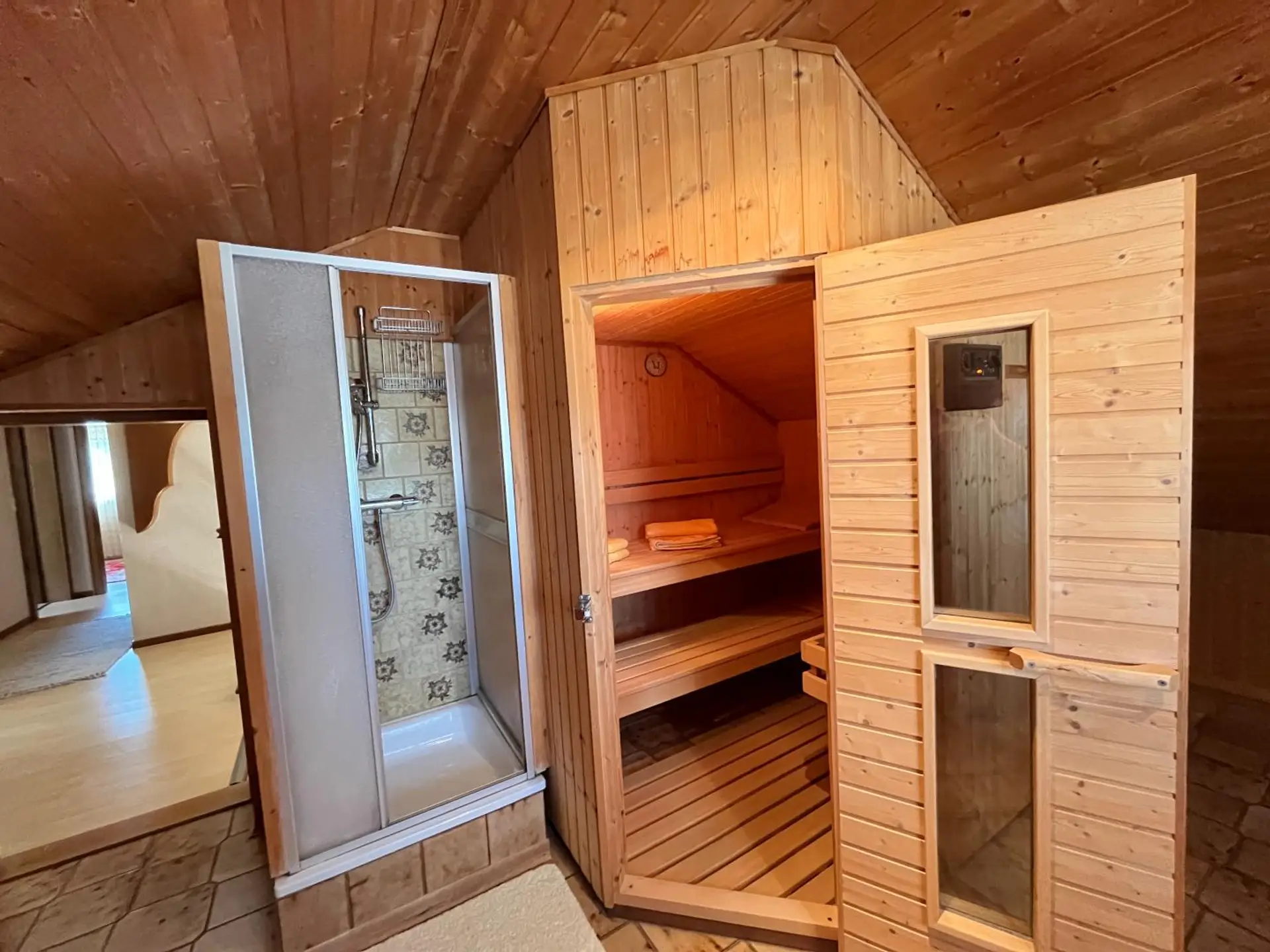 o Dachboden erweitert mit Sauna und Dusche für Wellnessmomente zu zweit oder mit Gästen