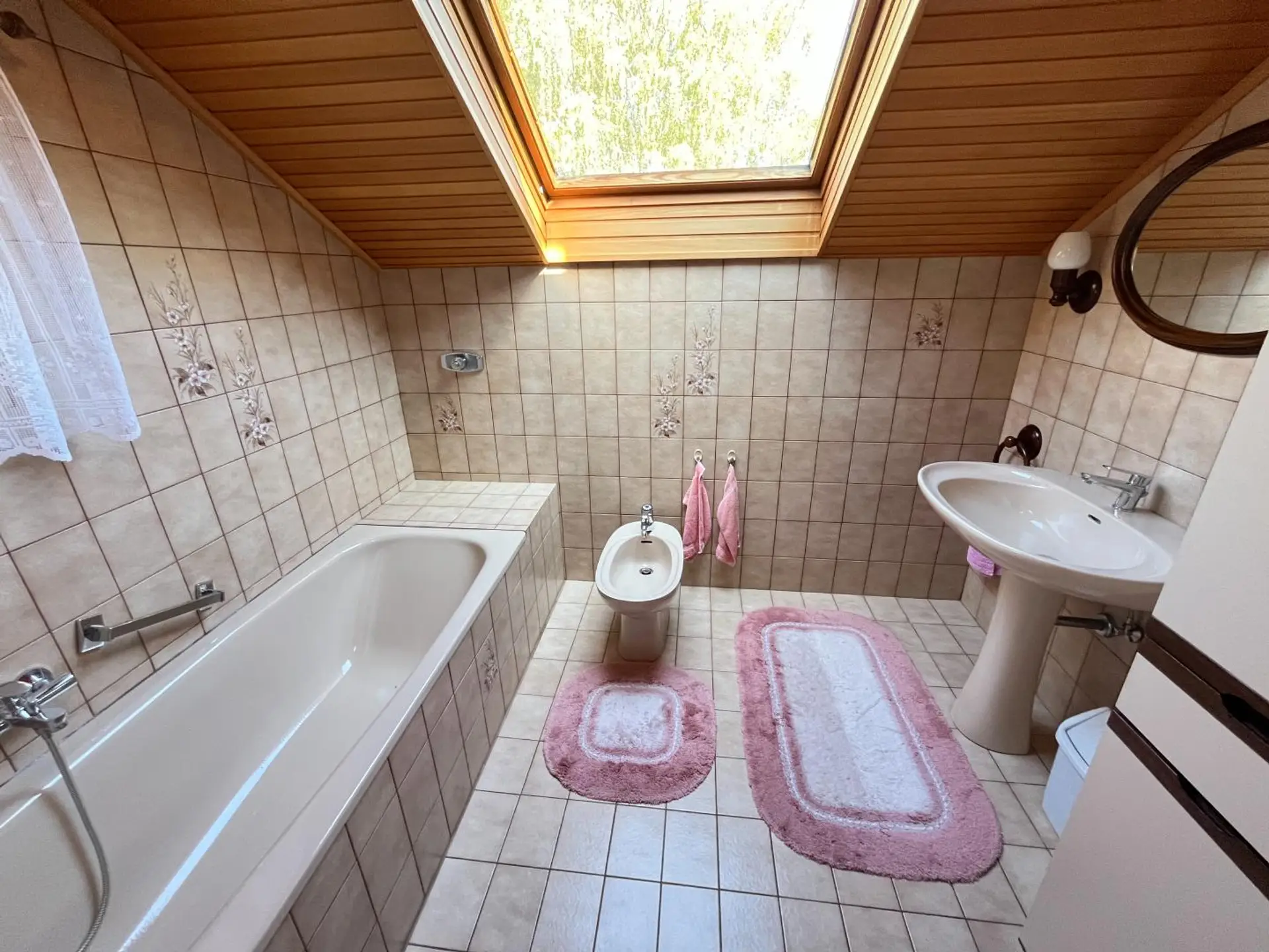 o Badezimmer mit Wanne und Dusche, zusätzliches WC
