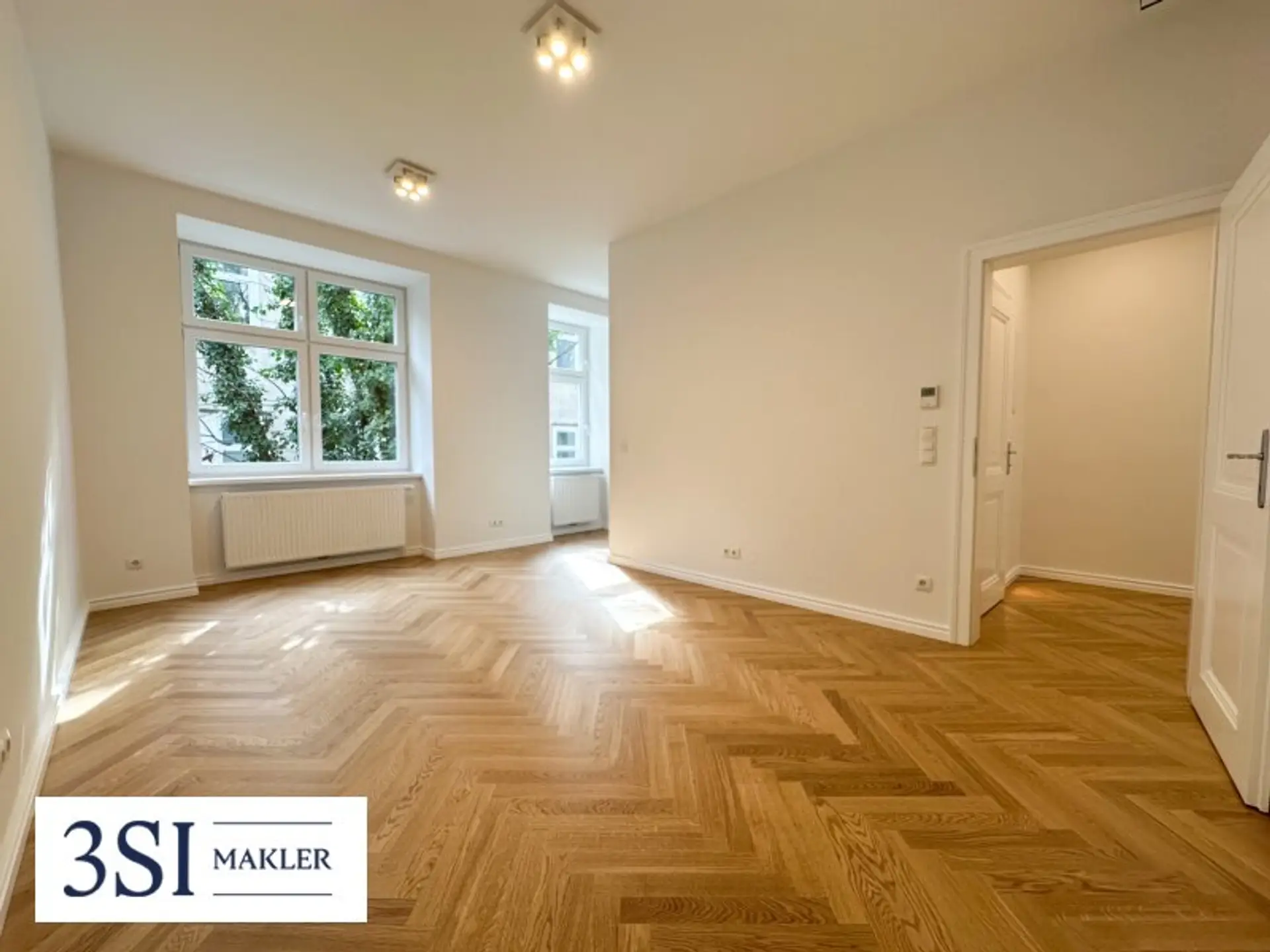 Bei den angeführten Fotos handelt es sich um Symbolfotos einer bereits fertiggestellten Wohnung im hochwertigen und eleganten 3SI-Stil. Die Sanierung dieser Wohnung wird bis April d. J. vollständig abgeschlossen.
