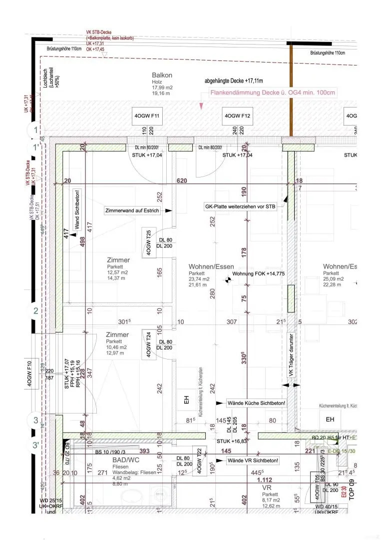 Auf ca. 59,56 m² Wohnfläche bietet sie eine klare, gut nutzbare Raumstruktur mit einer Wohnküche und zwei Schlafzimmern. Der Wohnbereich kann bei Bedarf einfach vergrößert werden, indem ein Schlafzimmer in die Wohnküche integriert wird. Der riesige überdachte Balkon mit ca. 17,99 m² erweitert den Wohnraum ins Freie.