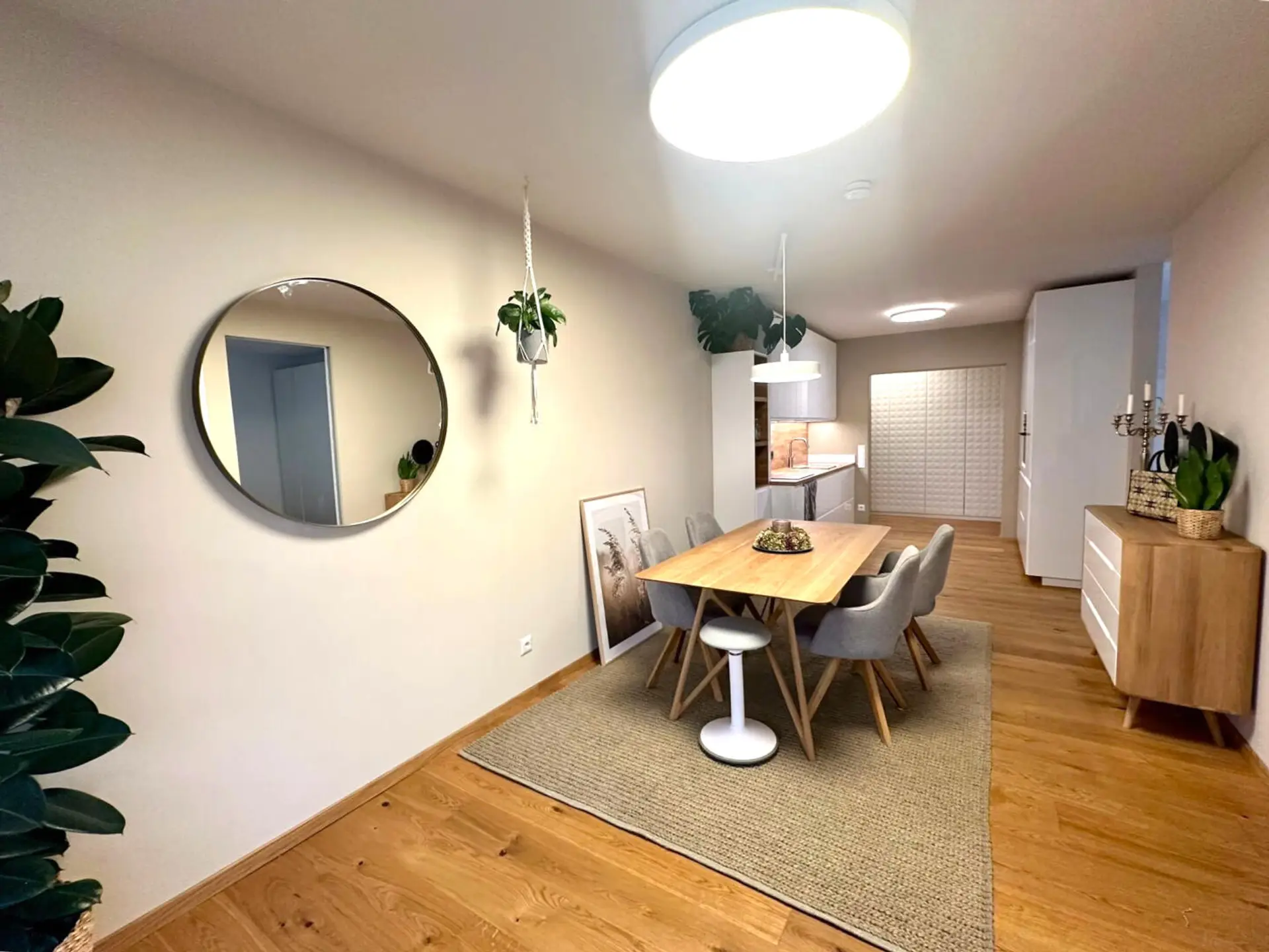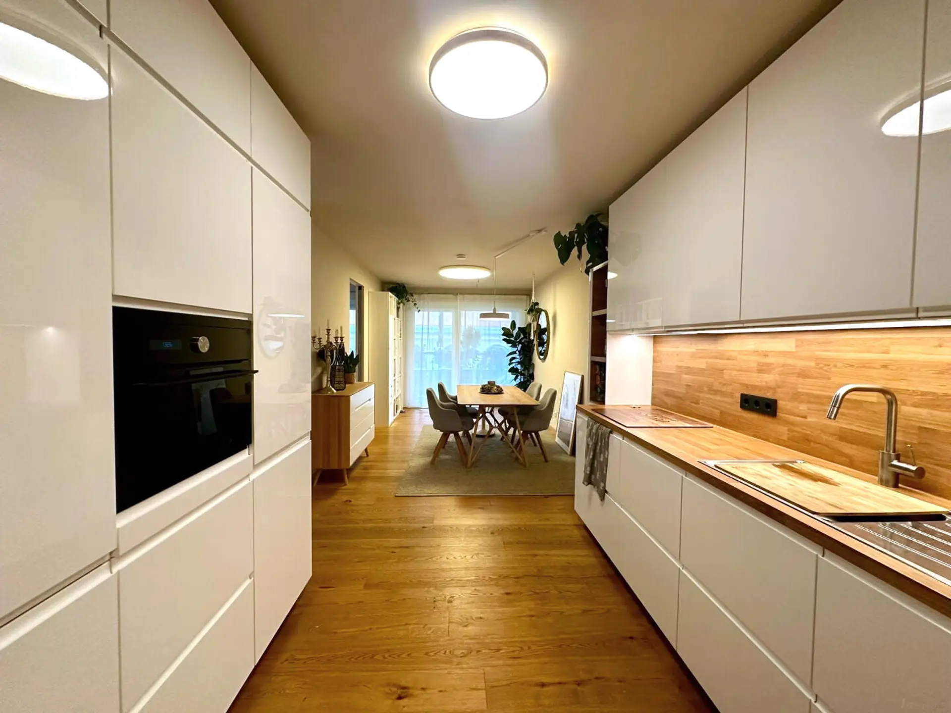 Das 2018 errichtete Gebäude zeichnet sich durch eine einzigartige Architektur aus und hebt sich damit klar von jedem anderen Wohnbau ab. Die Wohnung selbst befindet sich in einem sehr guten Zustand. Die moderne Küche inklusive Geräte wurde erst vor rund einem Jahr neu eingebaut und überzeugt durch zeitgemäßes Design und Qualität.
