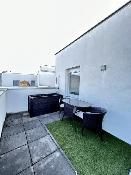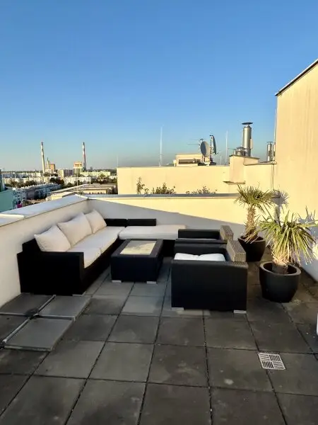 Dieses exklusive Penthouse mit 78,1 m² Wohnfläche bietet modernen Wohnkomfort, hochwertige Ausstattung und zwei traumhafte Terrassen mit unvergleichlichem Blick auf den Kahlenberg und die Skyline der Stadt.