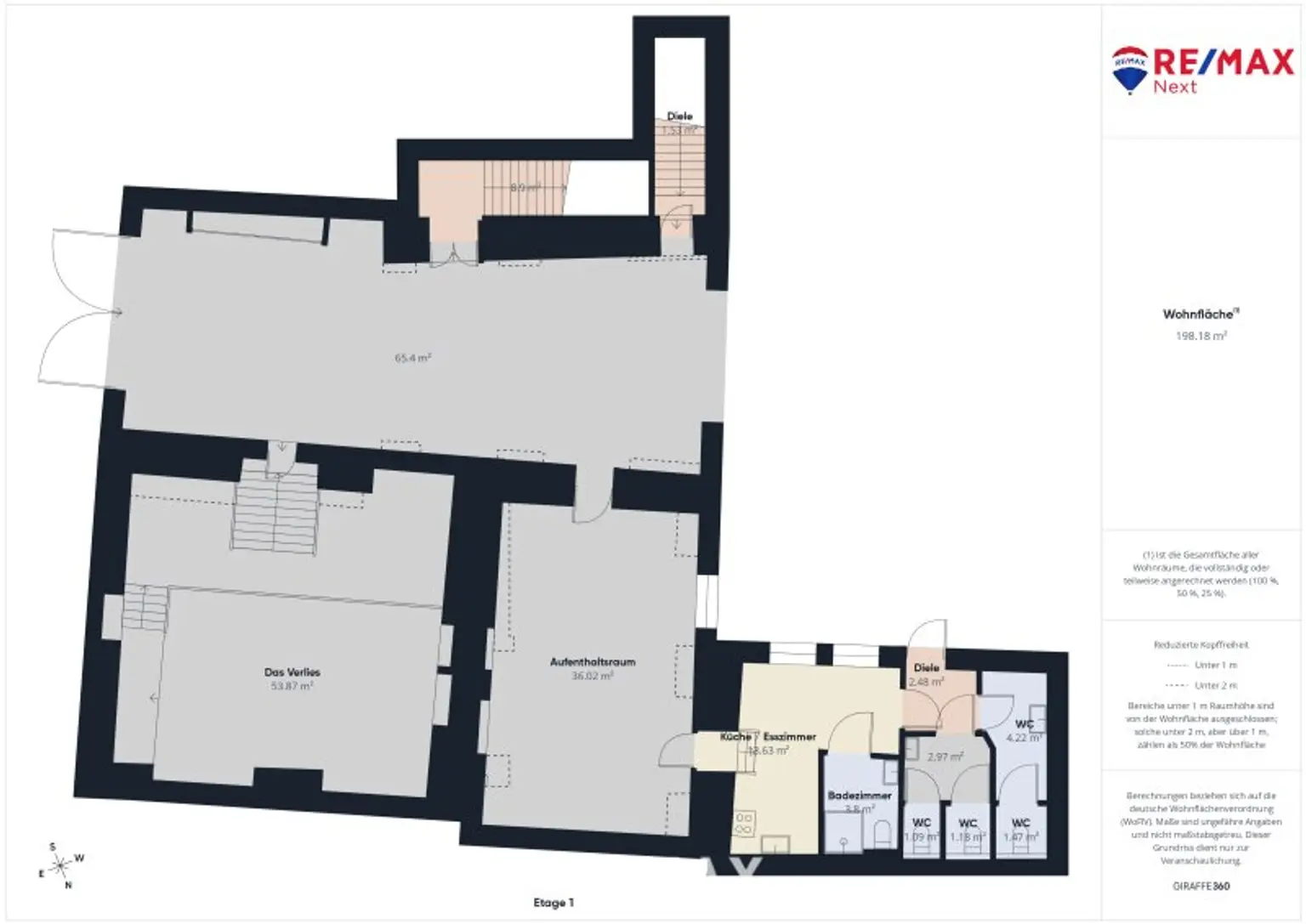 • Verlies auf Etage 1– ermöglicht unterschiedliche Nutzungszwecke (ca. 53,87 m²)