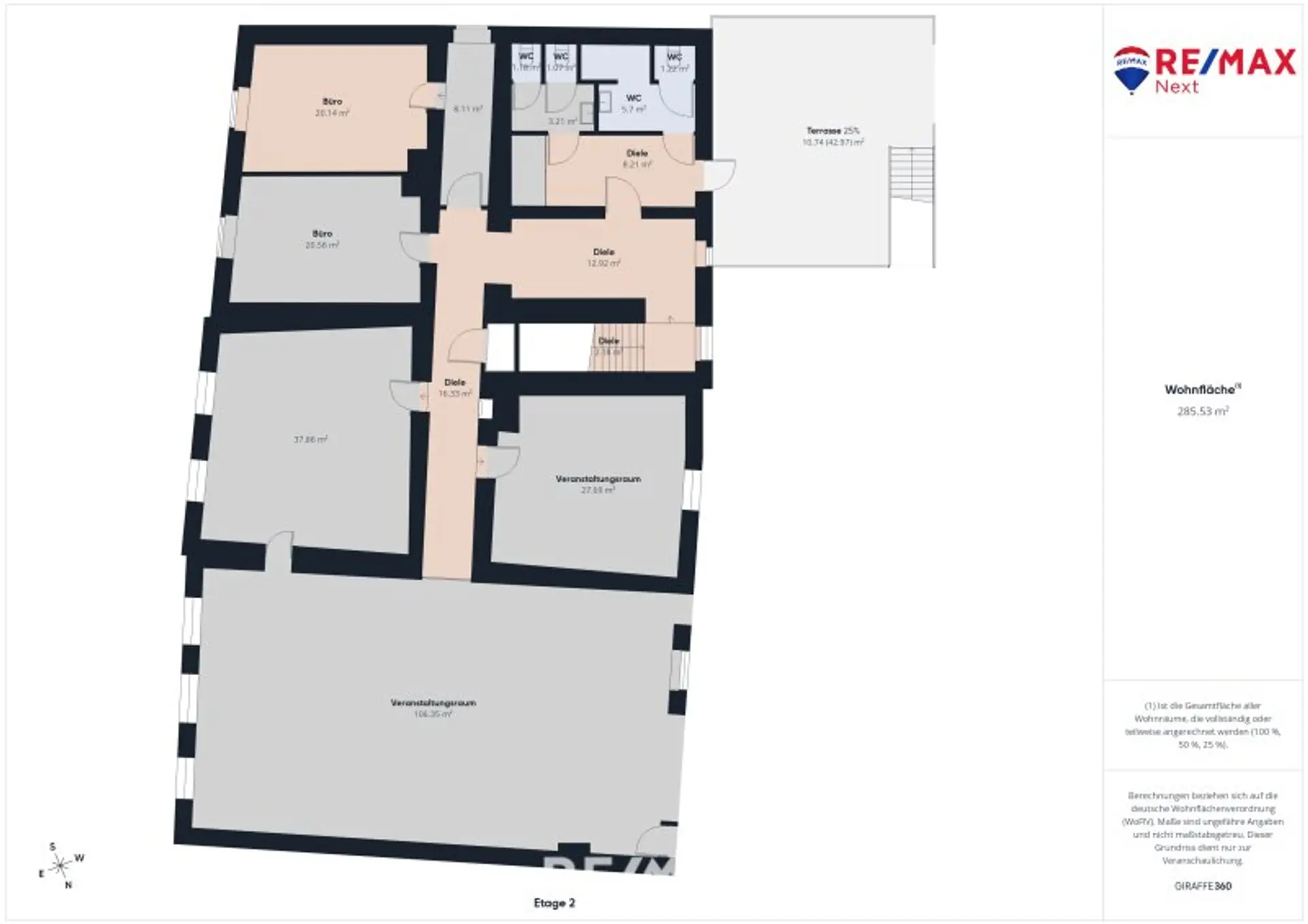 • Veranstaltungsraum auf Etage 2– großzügiger historischer Saal im Obergeschoss (ca. 106,35 m²)