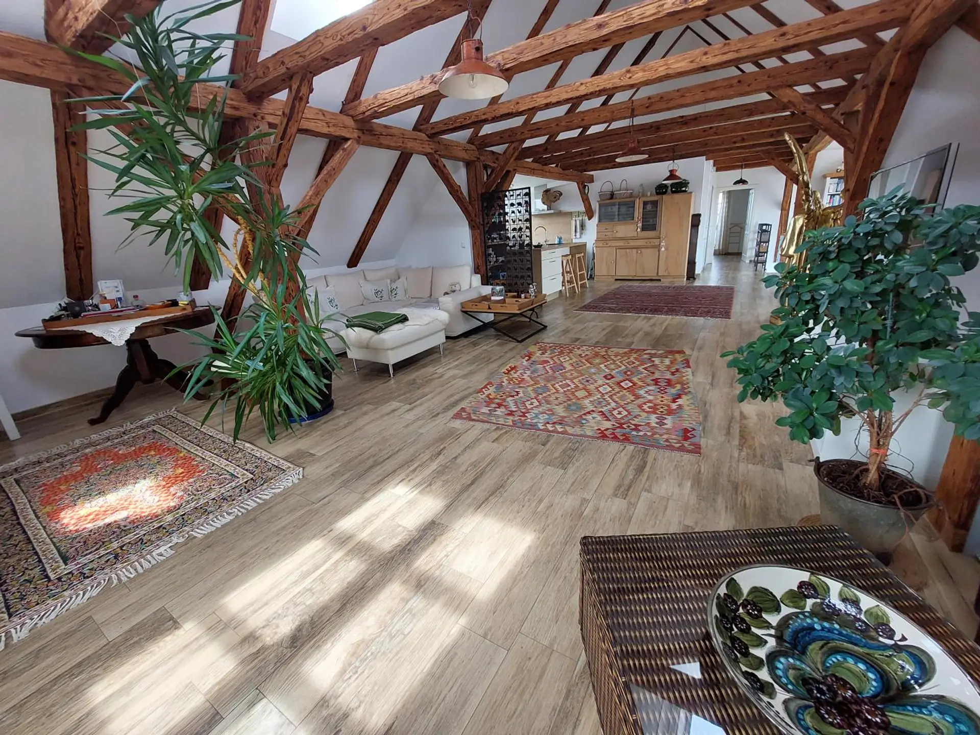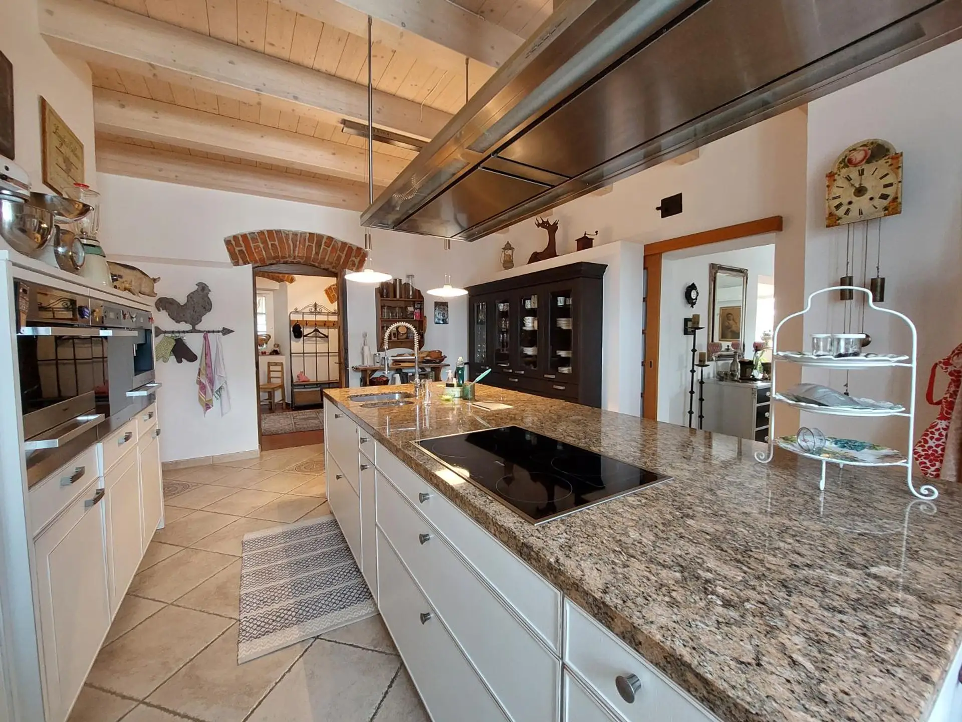 Das Nebenhaus, über eine großzügige Dachterrasse mit edlem Zirbenholzbelag verbunden, erweitert das Ensemble um zusätzliche Dimensionen. Während ein Gebäudeteil großzügige Stauraumlösungen bietet, beherbergt der andere eine eigenständige Wohneinheit – ideal als Atelier, Gästehaus oder inspirierender Arbeitsort.