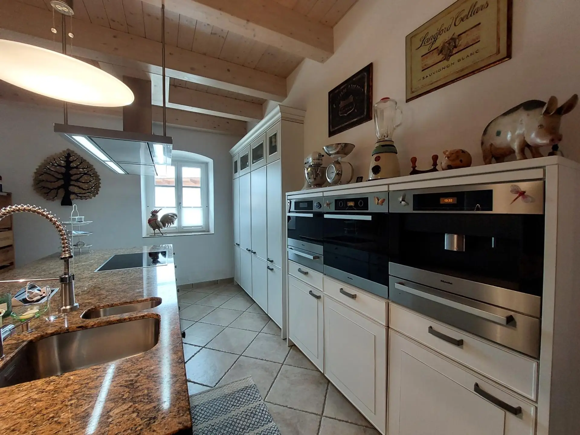Im Untergeschoss entfaltet sich eine Wohnwelt von ruhiger Eleganz: Vom einladenden Vorzimmer kann man Speise- und Wohnbereich sowie die Küche betreten, in die für die kulinarischen Genüsse der Bewohner bestens gesorgt werden kann. Ein Gästezimmer mit Himmelbett, ein stilvolles Bad mit Hauswirtschaftsbereich sowie ein weiteres Zimmer ergänzen diese Ebene zu einer harmonischen Einheit.