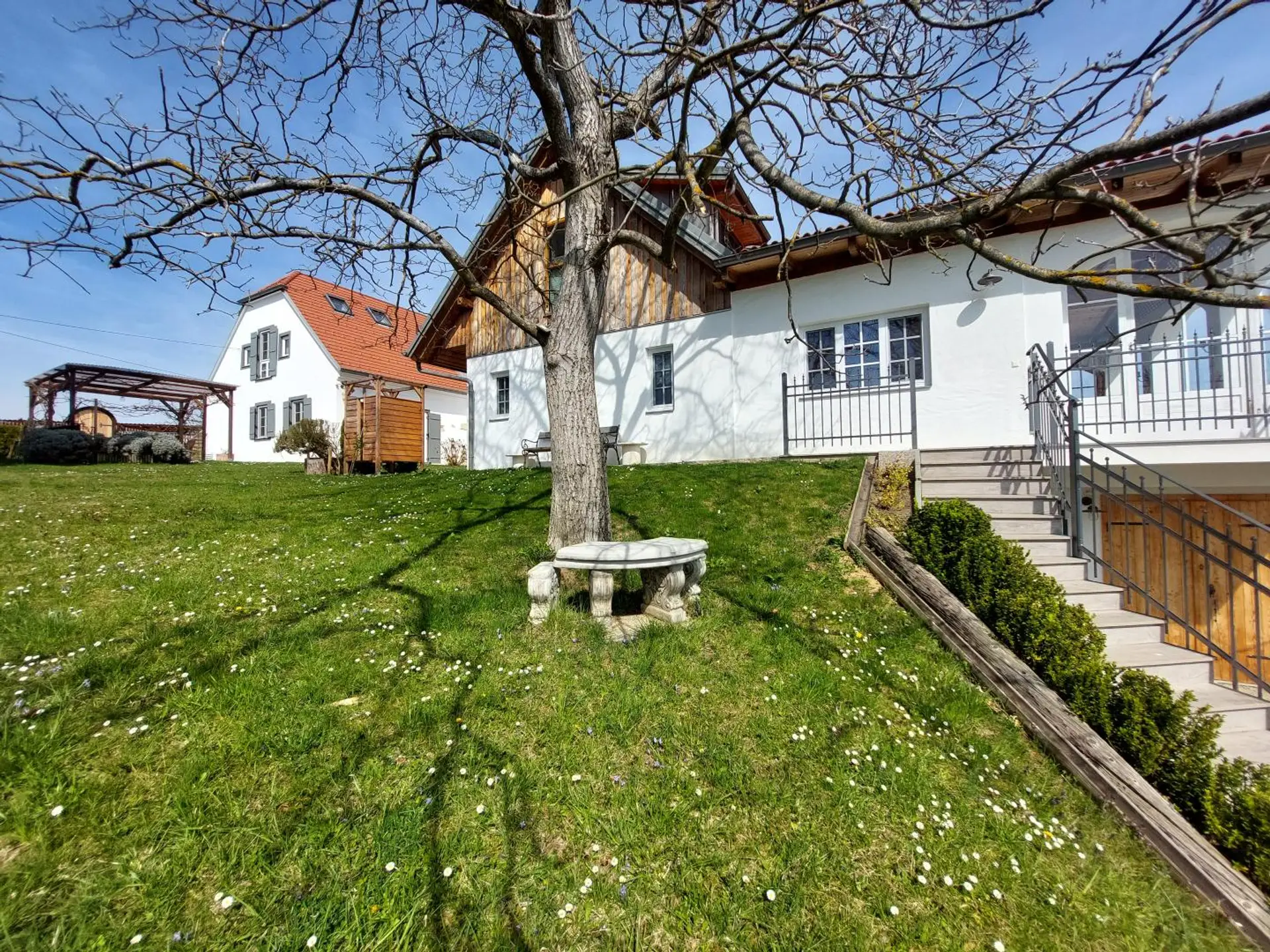 Auf rund 3 Hektar entfaltet sich ein privates Universum aus Weingarten, Wald und liebevoll inszenierten Gartenräumen, gleichermaßen inspirierend wie entschleunigend. Hier verschmilzt Natur mit kultivierter Lebensart zu einer Komposition von bemerkenswerter Harmonie.