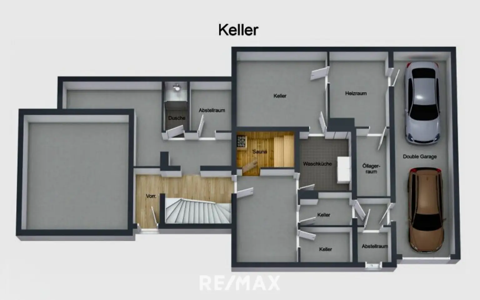 * Garage für zwei Fahrzeuge: Direkter Zugang zum Haus, zusätzliche Abstellmöglichkeiten vorhanden.