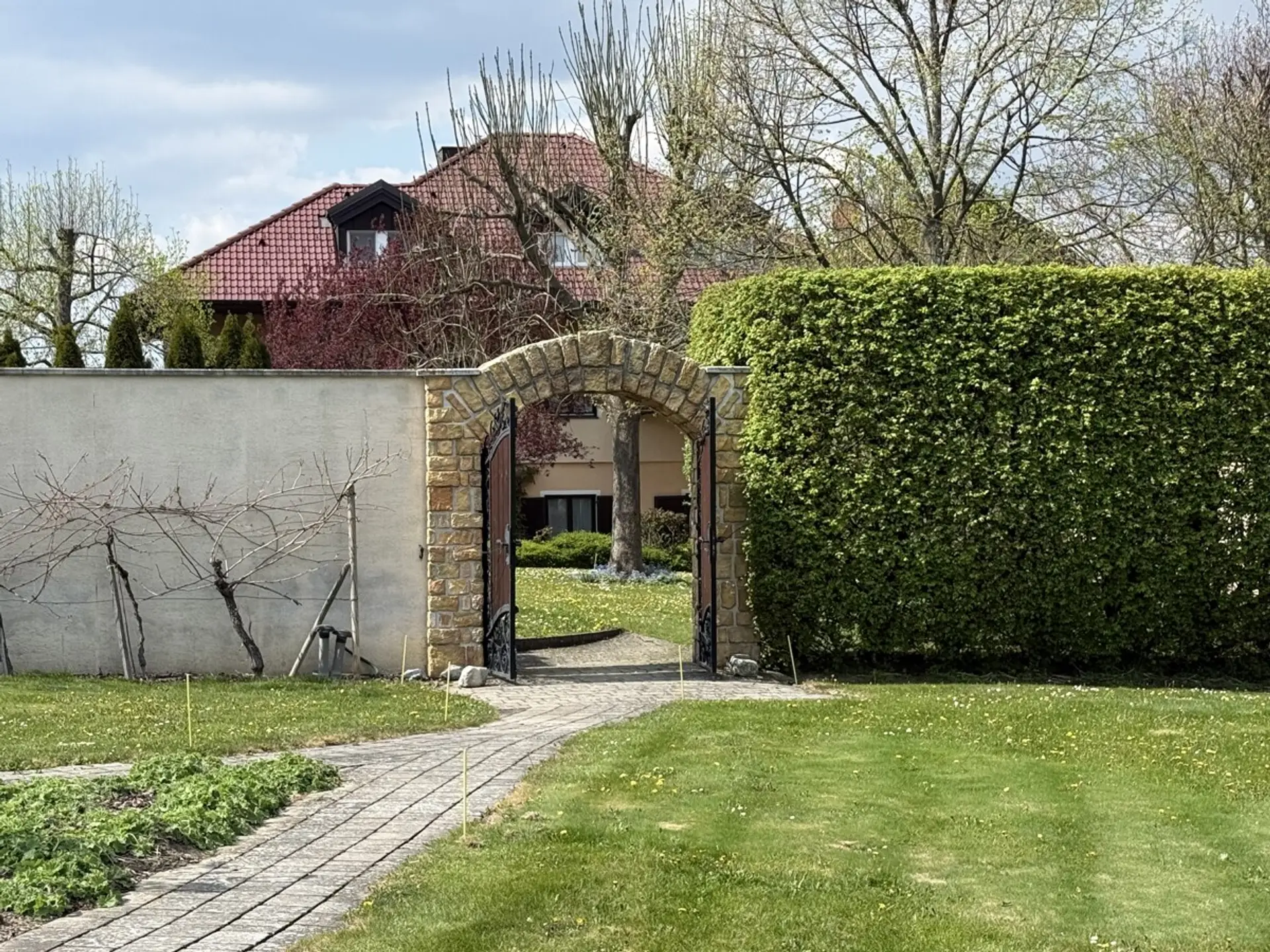 Ein grosszügiges Landhaus auf einer Gartengrundstücksfläche von 1.800m² schliesst an eine als Park gestaltete Gartenlandschaft von über 8000m² an - nicht einsehbar, mit gepflegten Rasenflächen