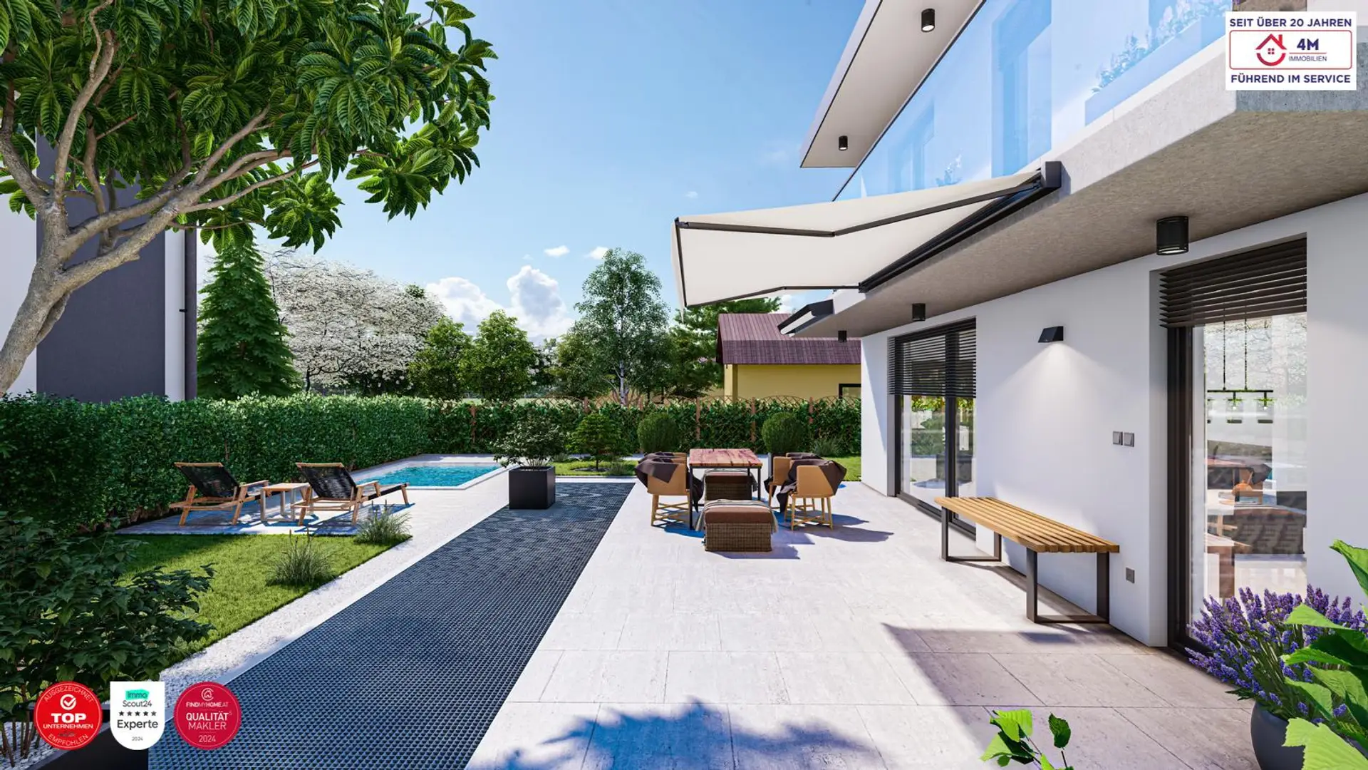 Platz für Sitzmöbel und Pflanzgefäße