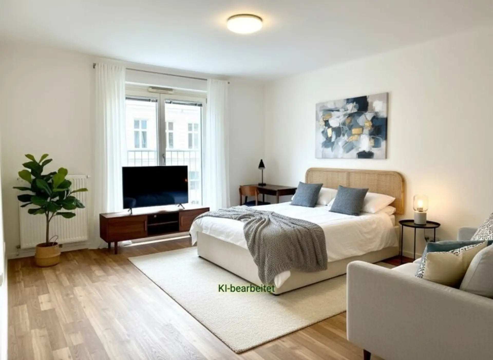 Die Wohnung liegt im zweiten Liftstock und ist zentral begehbar. Sie wurde gerade frisch saniert, eine neue Küche wurde eingebaut, neue Fußböden aus Laminat wurden verlegt und die Wohnung ist frisch ausgemalt. Die Isolierfenster aus Kunststoff sind nicht neu, aber neuwertig. Ein Erstbezug nach Sanierung. Die Fotos sind teilweise mit KI-generierter Einrichtung zu sehen, sie wird aber bis auf Küche und Bad unmöbliert vermietet.