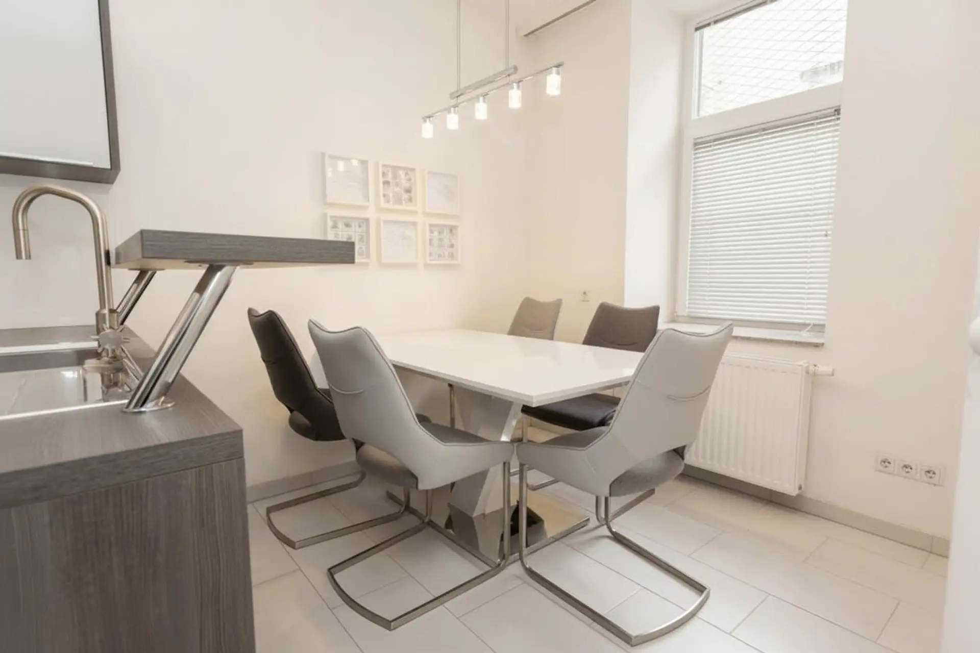 Ein besonderer Vorteil ist die barrierearme Erreichbarkeit: Durch eine kleine Aufzugstreppe ist die Wohnung komfortabel zugänglich und bietet somit auch für Patienten oder Kunden eine angenehme Eintrittssituation.