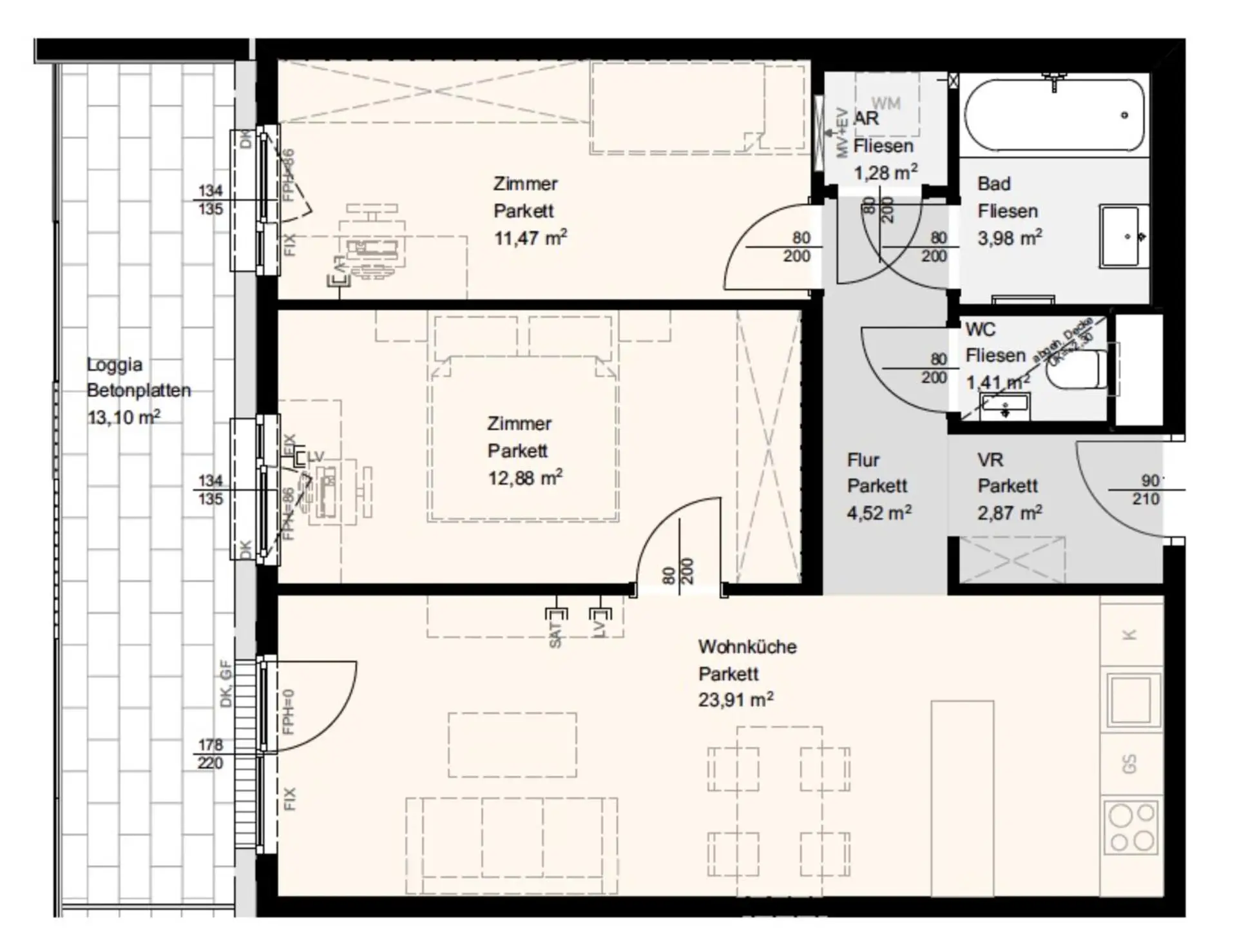 Weitere Wohnungen in der Anlage frei zwischen 39m2 und 82m2 ( Gartenwohnungen, 1.bis 3. Stock) wählbar, mit Freiflächen und zusätzlicher Anmietung eines Stellplatzes.